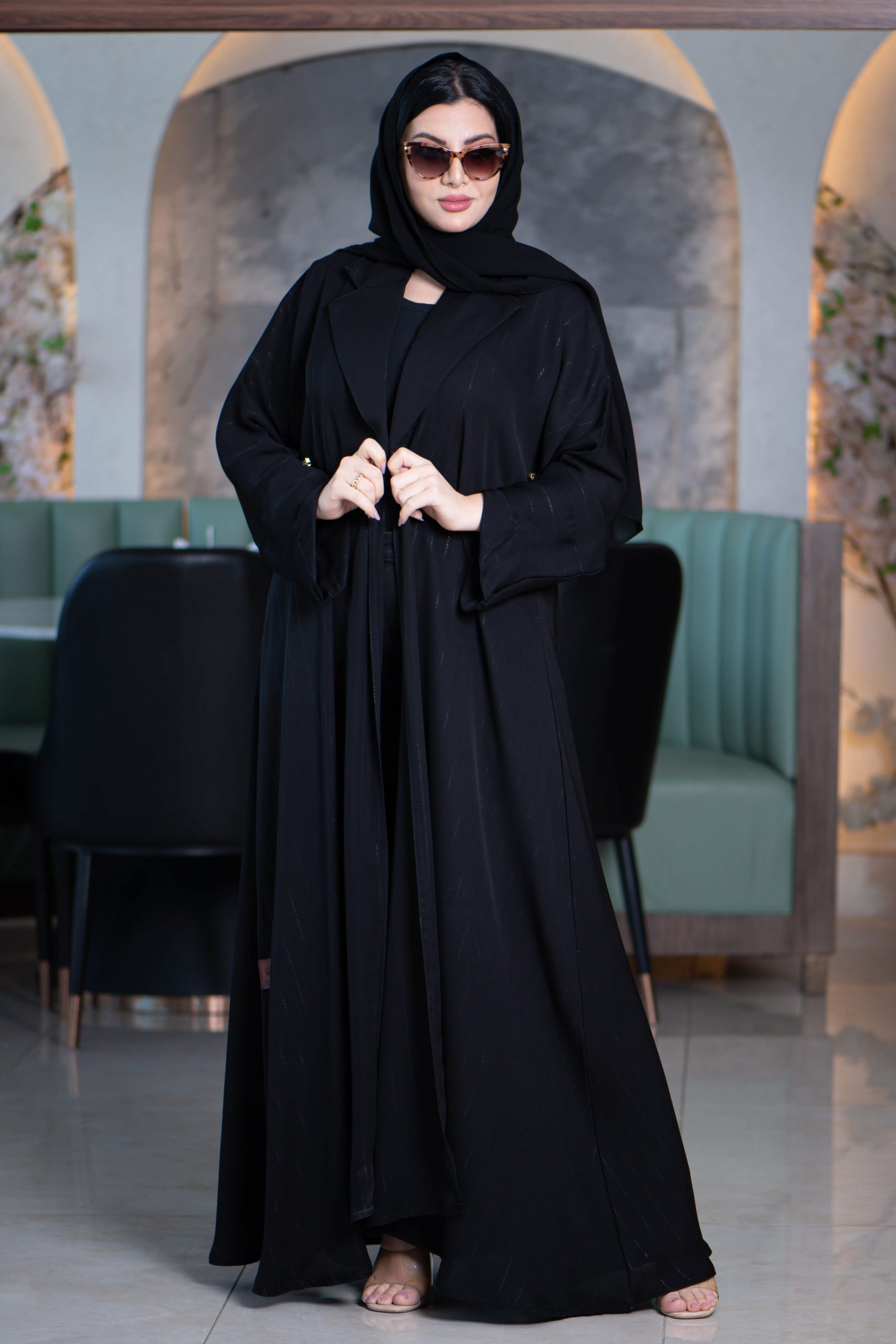 زاهية – عباية توجان كلوش بتدخيلات تطريز من الأمام والأكمام