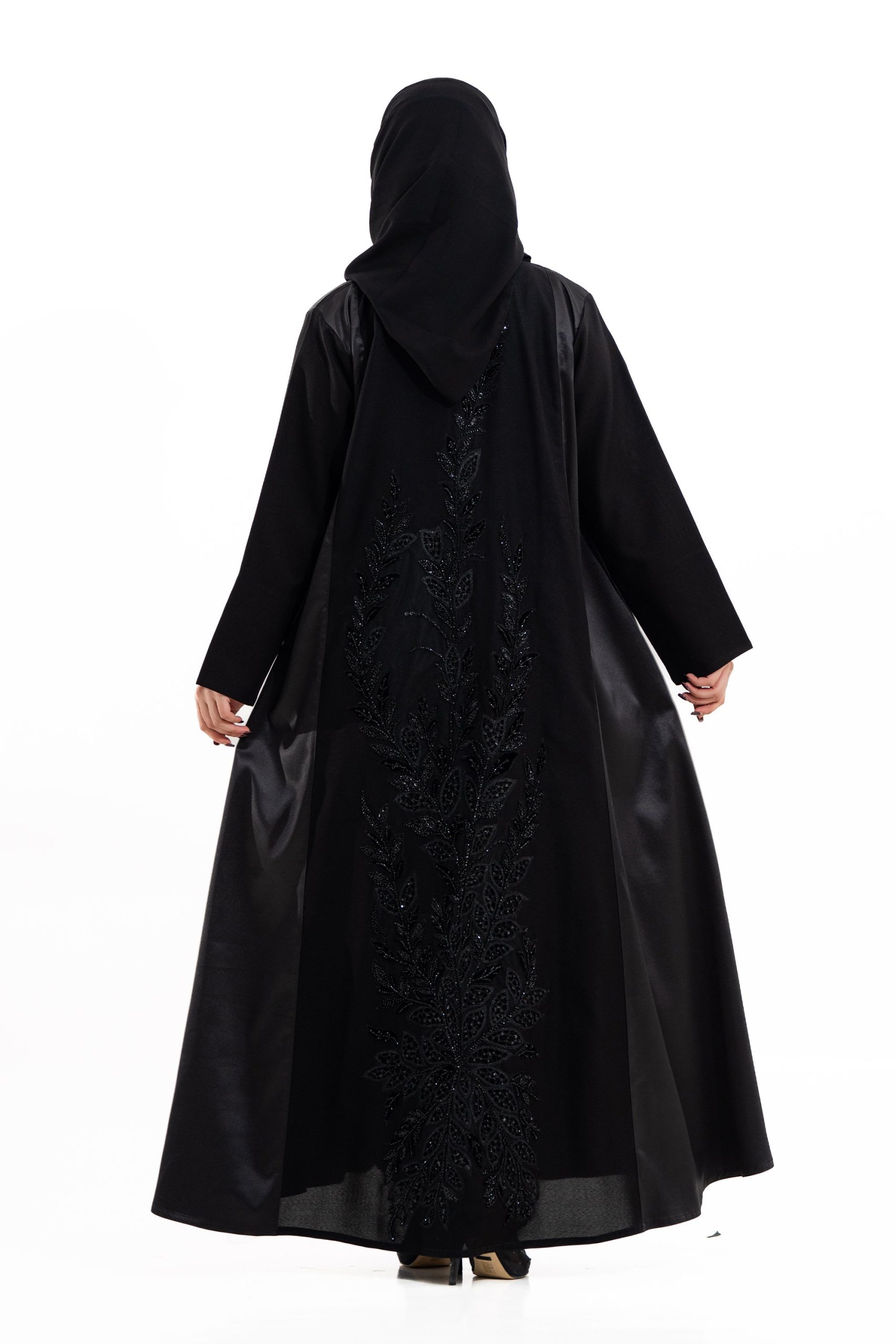 عباية أنيقة بتصميم عصري مصنوعة من قماش أسود فاخر ناعم الملمس، مزينة بتدخيلات كلفة علي الام مطرز بنقوش راقية ومطعمة بتطريز لامع يضفي فخامة هادئة على وواجهة العباية. تصميمها الانسيابي يمنحك راحة في الحركة وأناقة متوازنة، لتكون خيارًا مثاليًا للاستخدام اليومي والطلعات الرسمية بأسلوب راقٍ وعصري. تأتي مع تنسيق أنيق يسهل اعتماده لمختلف الإطلالات.