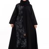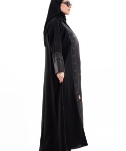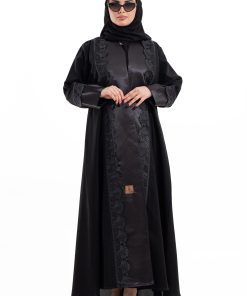 عباية أنيقة بتصميم عصري مصنوعة من قماش أسود فاخر ناعم الملمس، مزينة بتدخيلات قماش مطرز بنقوش هندسية راقية ومطعمة بتطريز لامع يضفي فخامة هادئة على الأكمام وواجهة العباية. تصميمها الانسيابي يمنحك راحة في الحركة وأناقة متوازنة، لتكون خيارًا مثاليًا للاستخدام اليومي والطلعات الرسمية بأسلوب راقٍ وعصري. تأتي مع تنسيق أنيق يسهل اعتماده لمختلف الإطلالات.