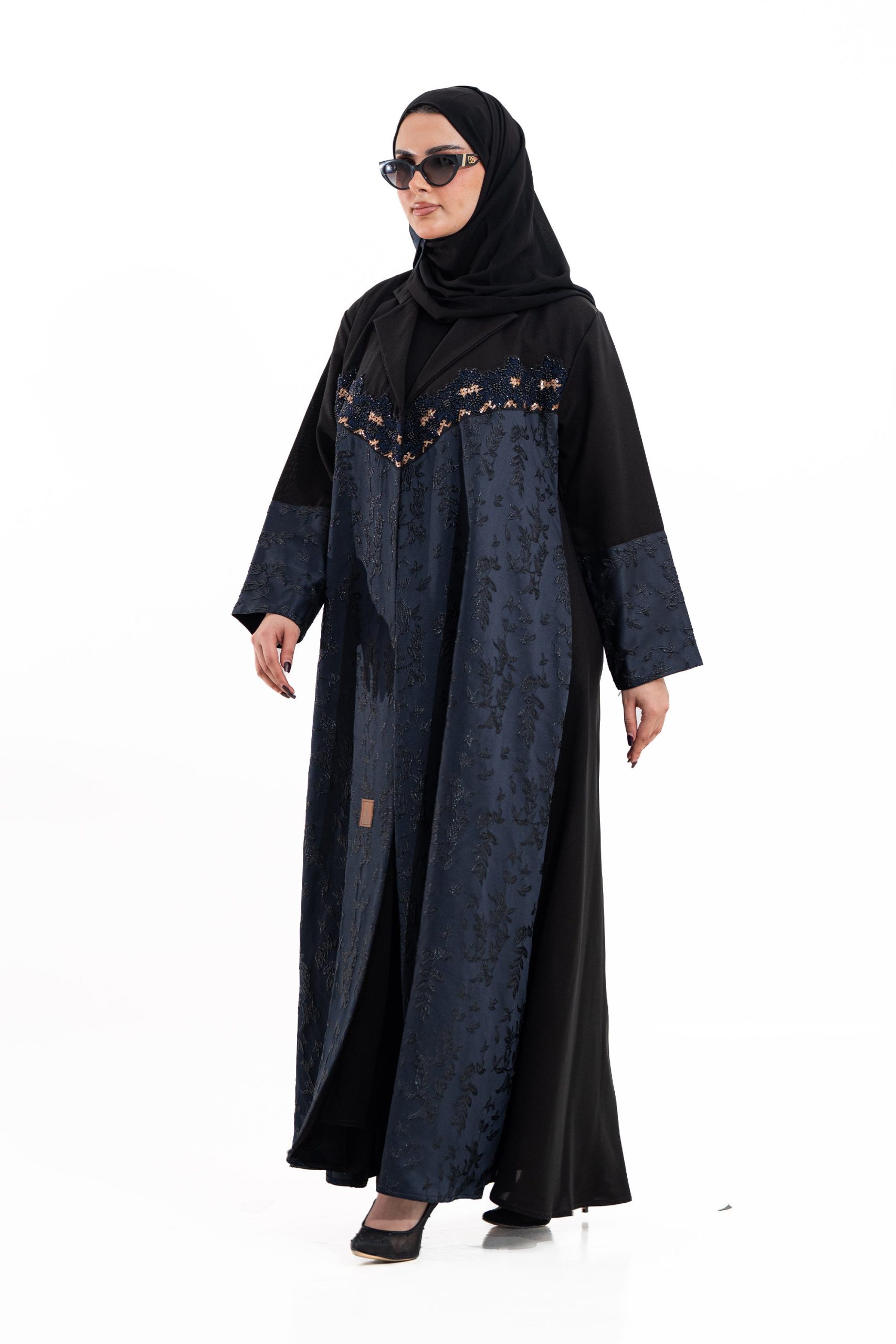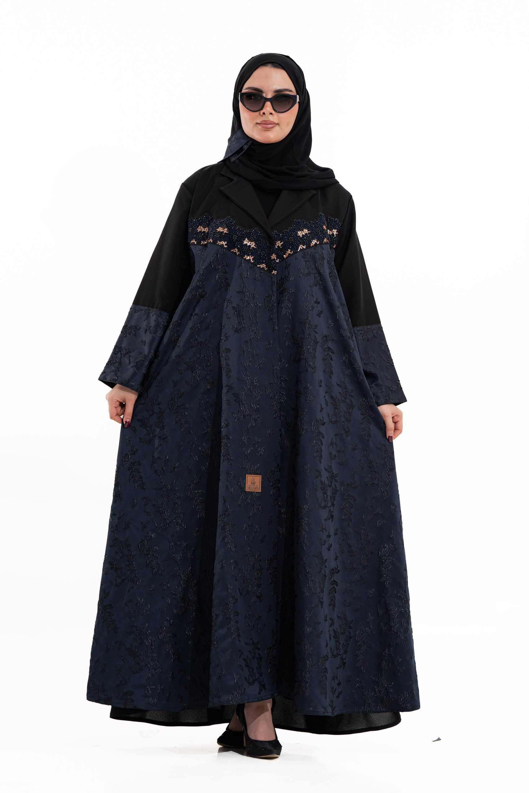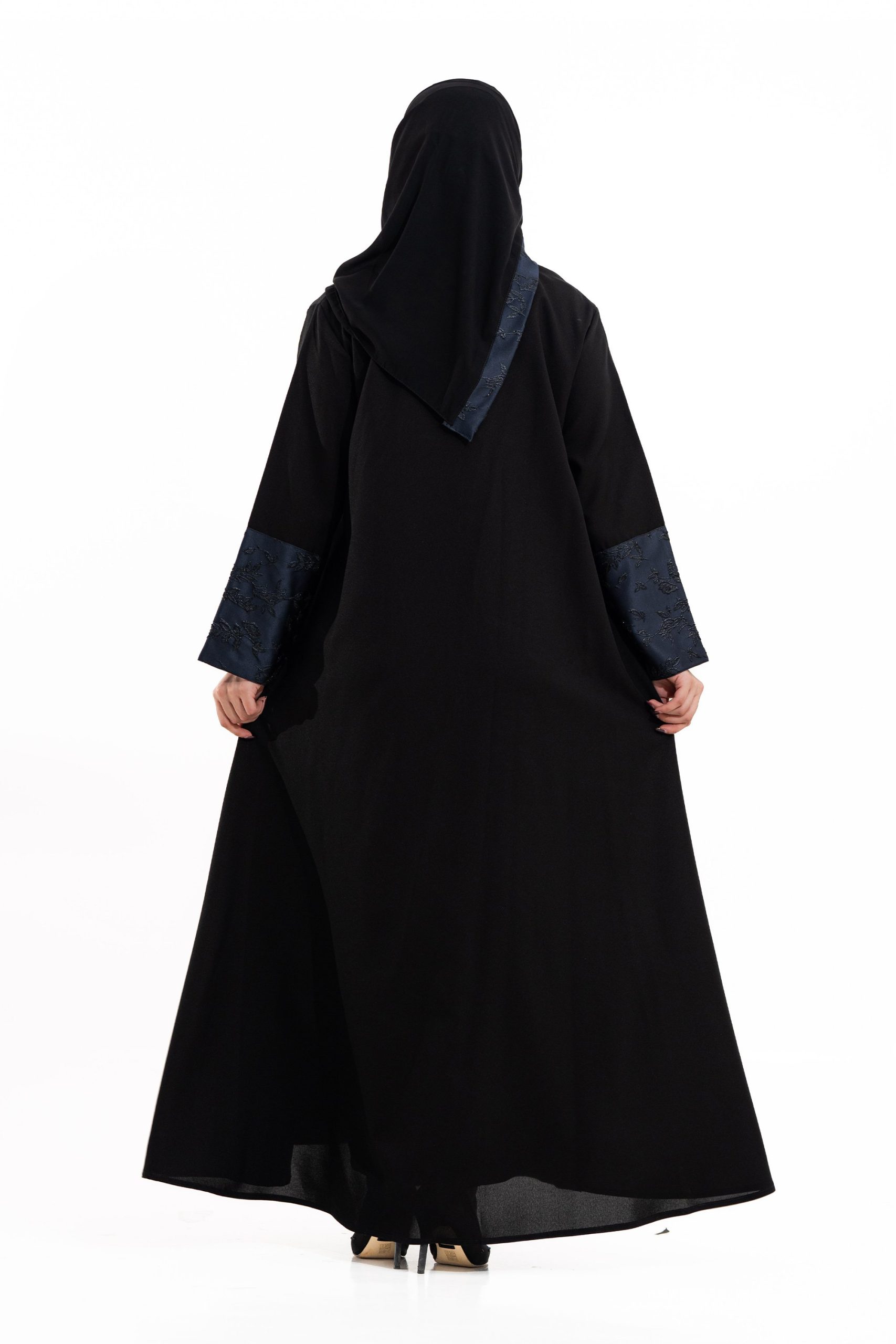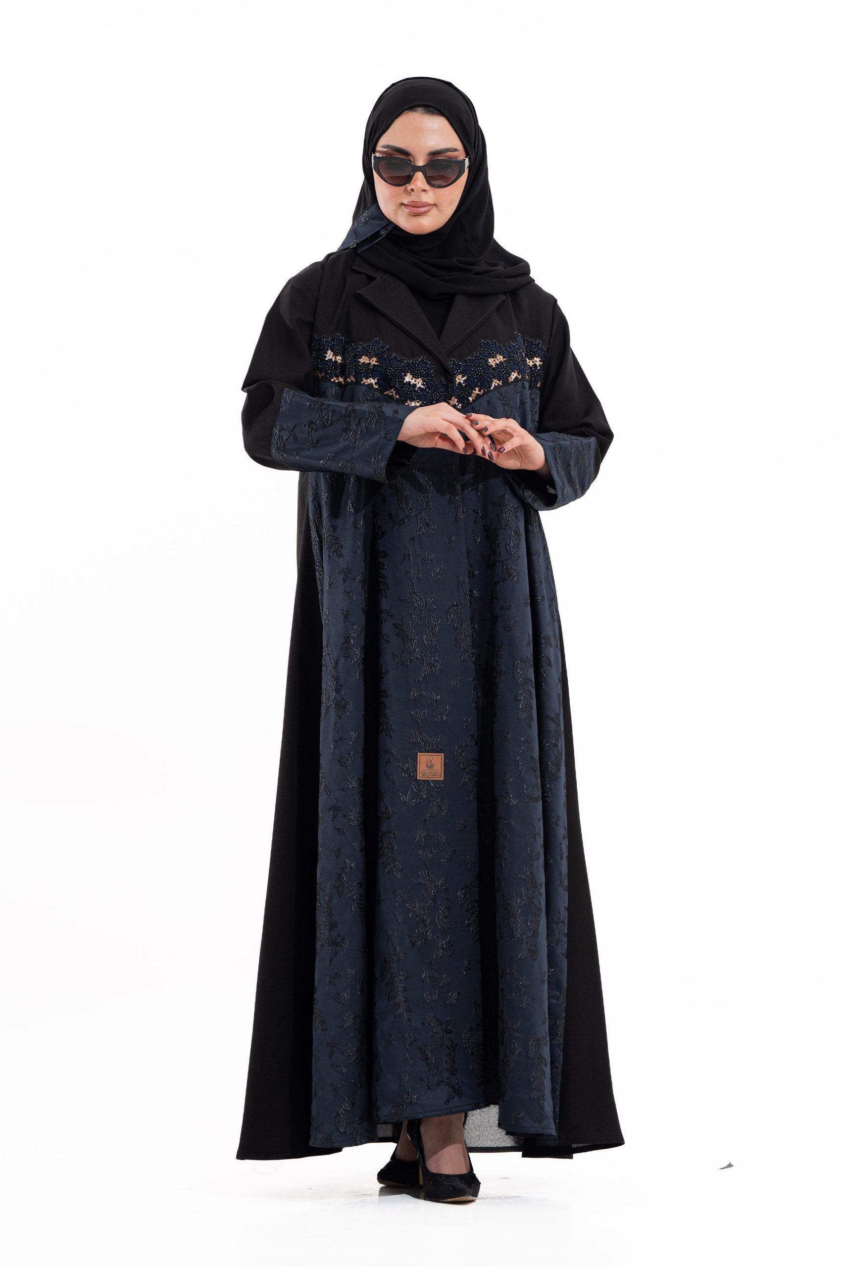 عباية أنيقة بتصميم عصري مصنوعة من قماش أسود فاخر مع جاكر تركي كحلي، يضفي فخامة هادئة على الأكمام وواجهة العباية. تصميمها الانسيابي يمنحك راحة في الحركة وأناقة متوازنة، لتكون خيارًا مثاليًا للاستخدام اليومي والطلعات الرسمية بأسلوب راقٍ وعصري. تأتي مع تنسيق أنيق يسهل اعتماده لمختلف الإطلالات.