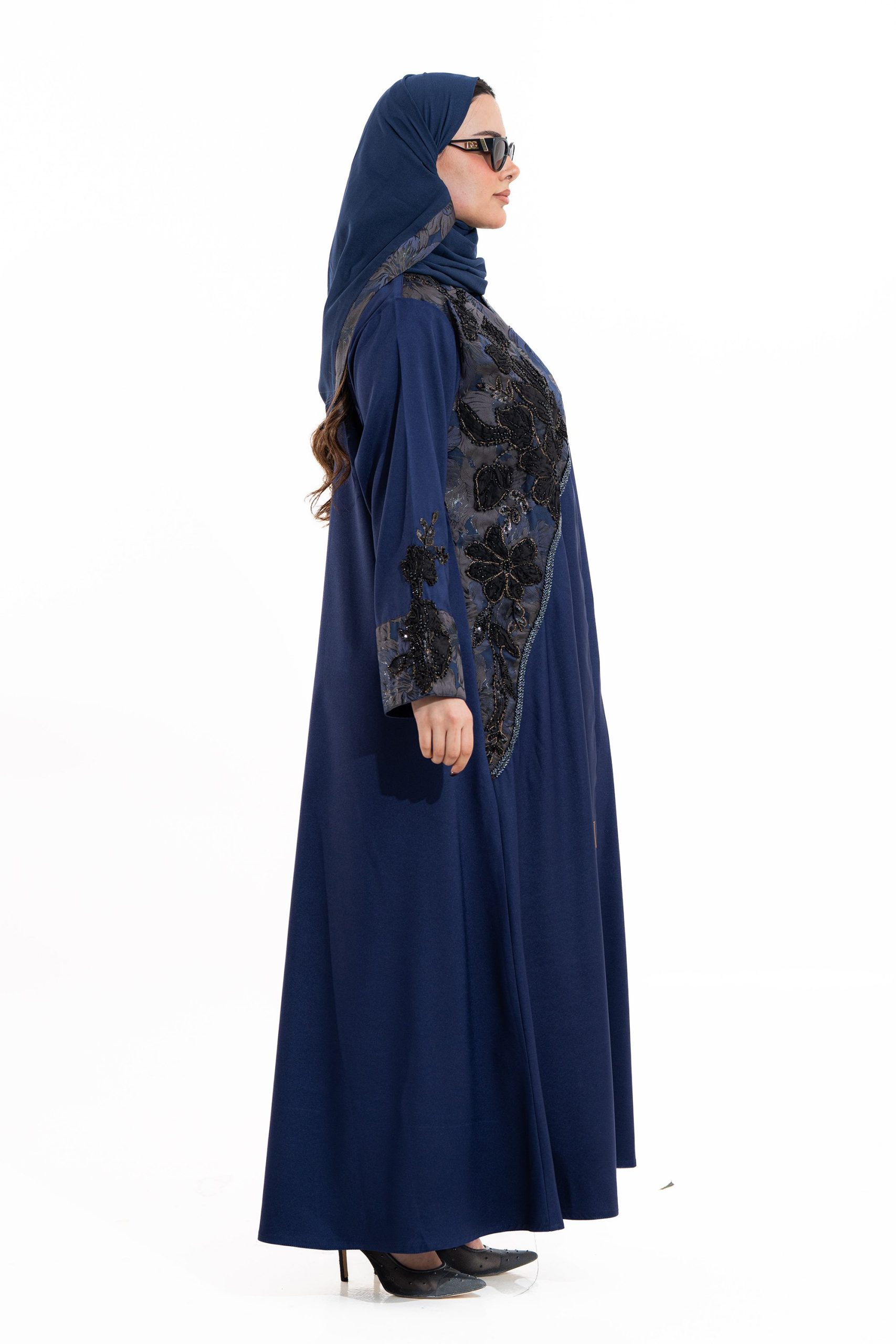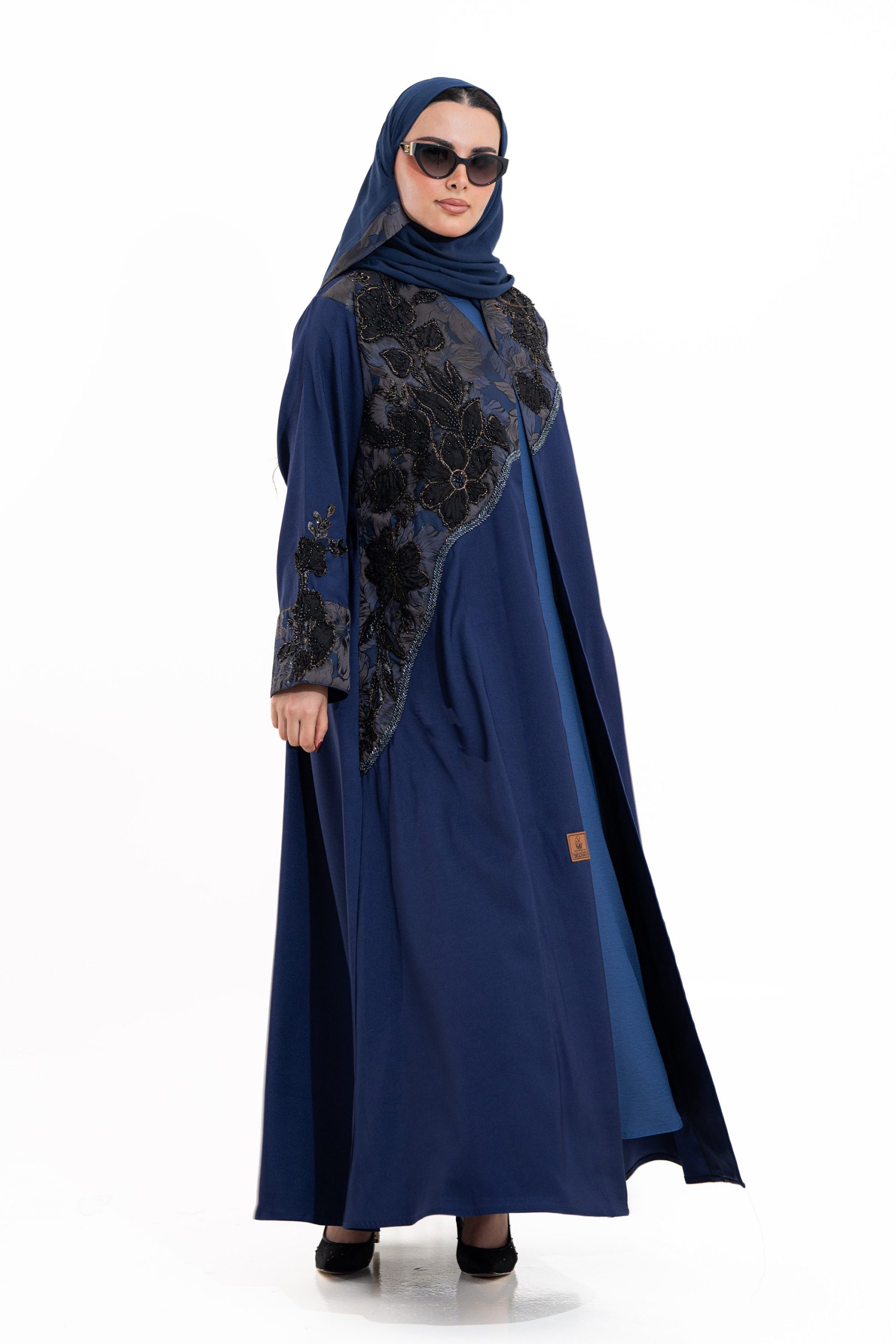 عباية أنيقة بتصميم عصري مصنوعة من قماش أسود فاخر ناعم الملمس، مزينة بتدخيلات قماش مطرز بنقوش هندسية راقية ومطعمة بتطريز لامع يضفي فخامة هادئة على الأكمام وواجهة العباية. تصميمها الانسيابي يمنحك راحة في الحركة وأناقة متوازنة، لتكون خيارًا مثاليًا للاستخدام اليومي والطلعات الرسمية بأسلوب راقٍ وعصري. تأتي مع تنسيق أنيق يسهل اعتماده لمختلف الإطلالات.