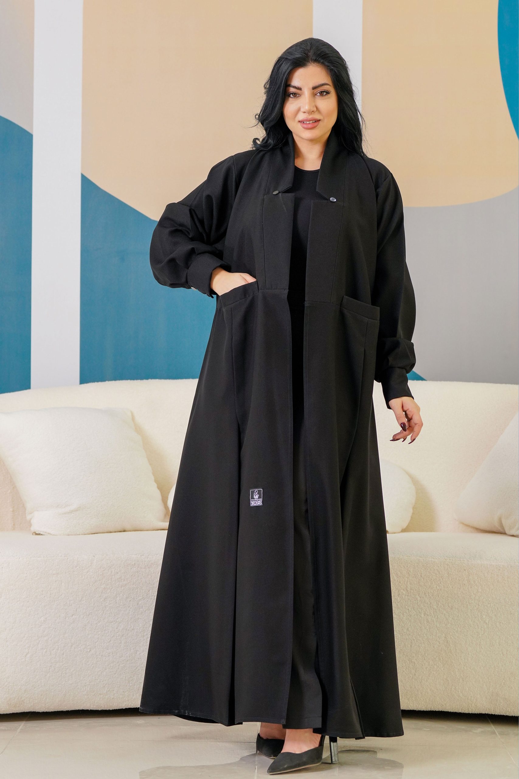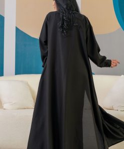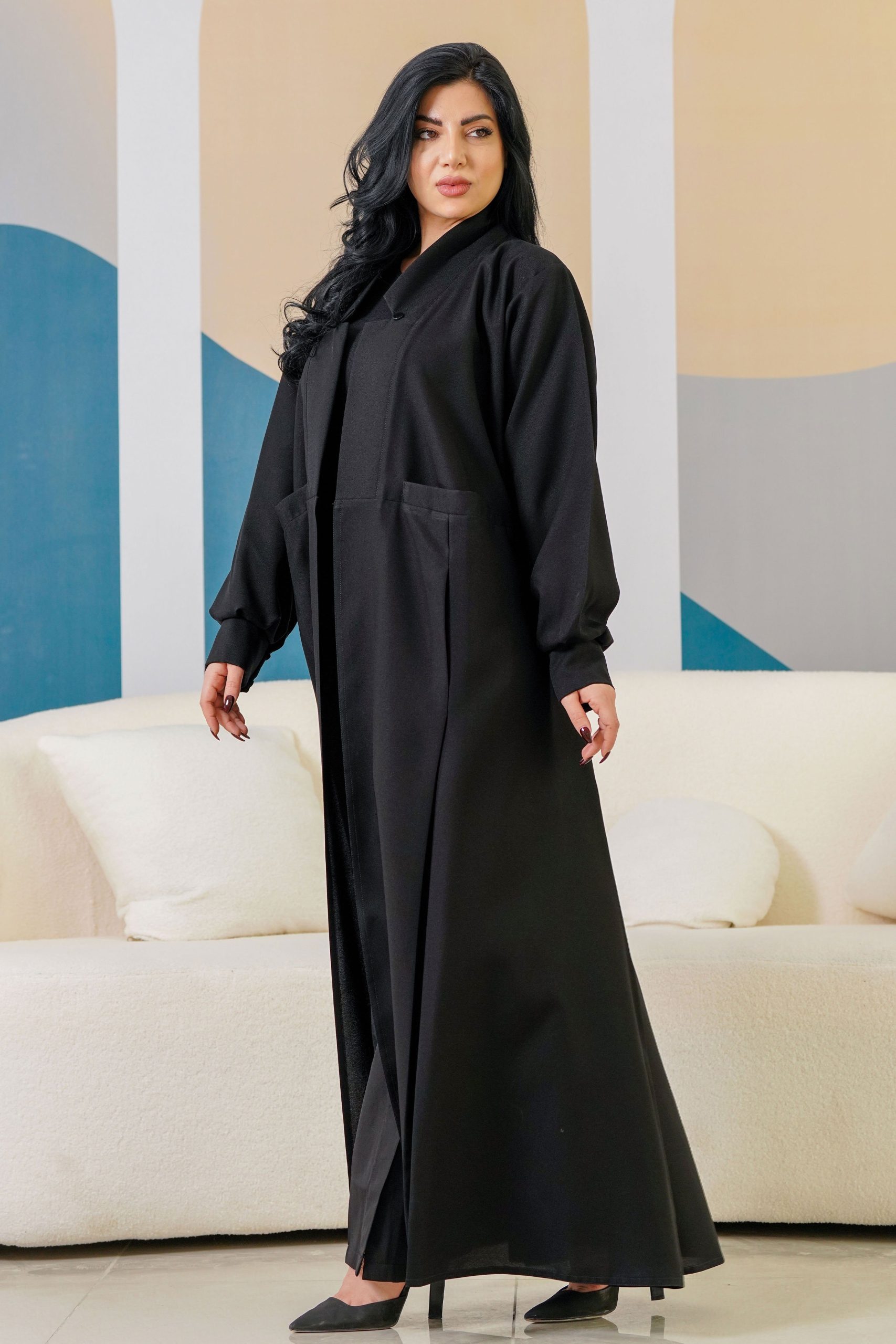 زاهية – عباية سوداء ناعمة بجيوب
