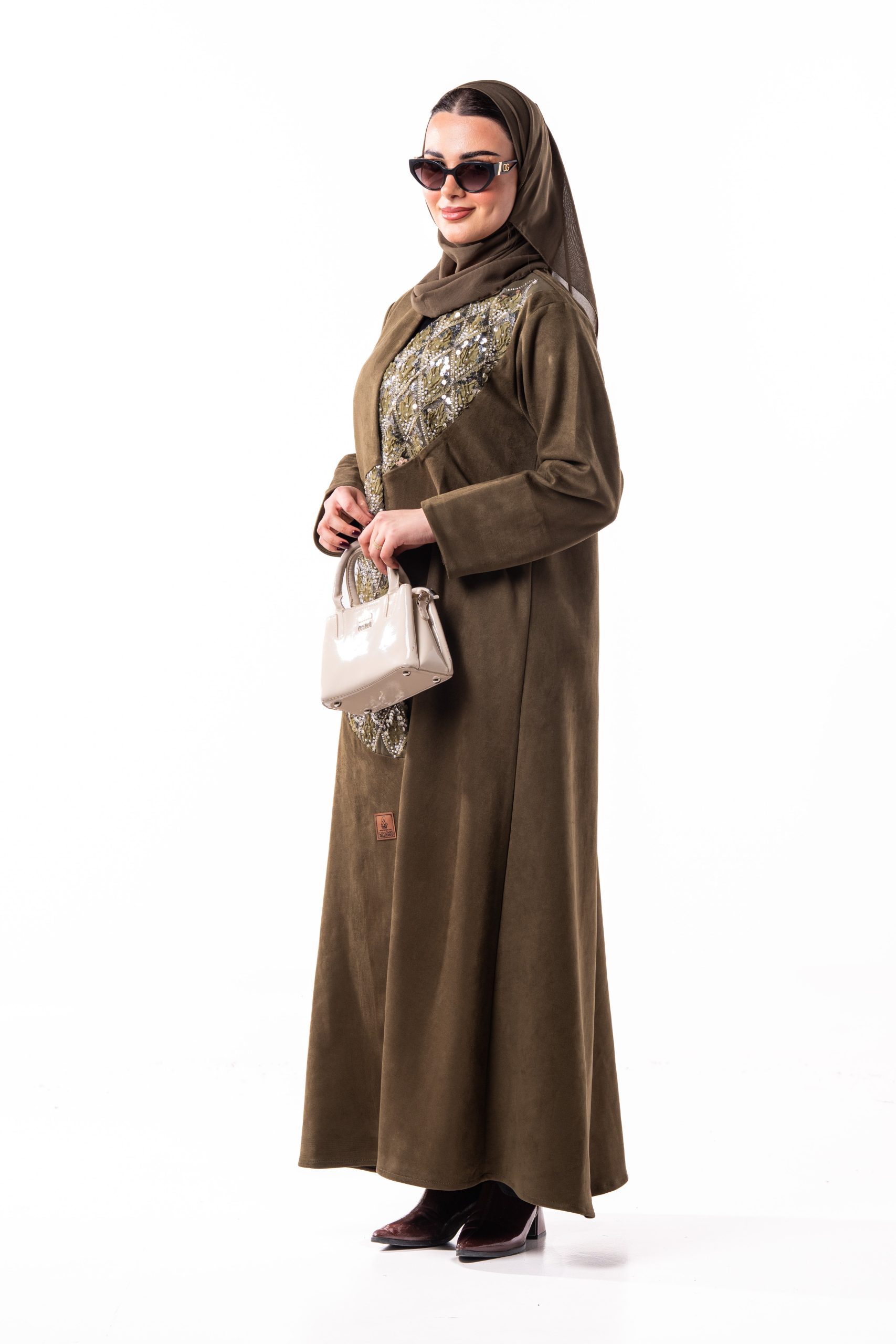 زاهية – عباية توجان كلوش بتدخيلات تطريز من الأمام والأكمام