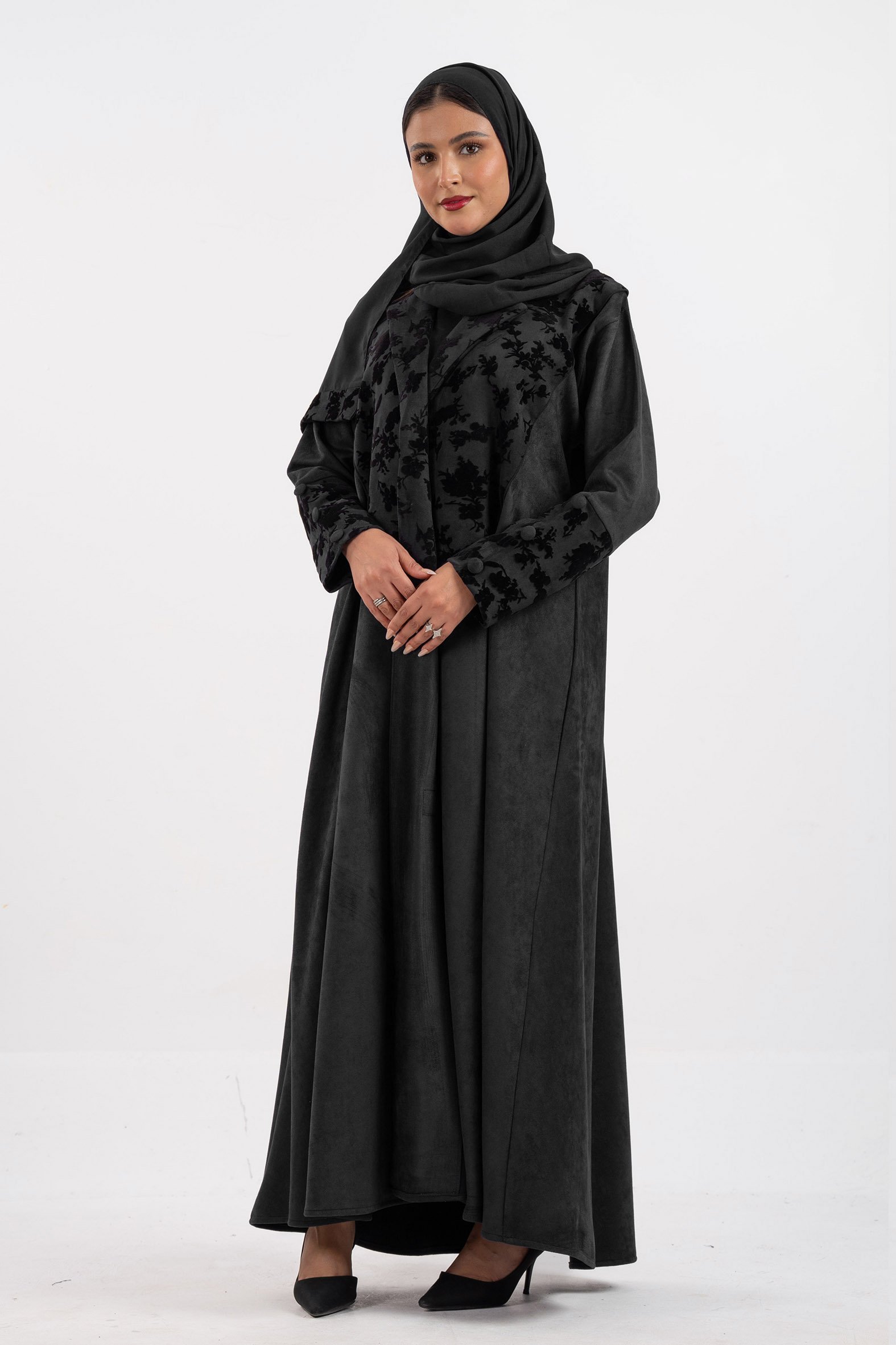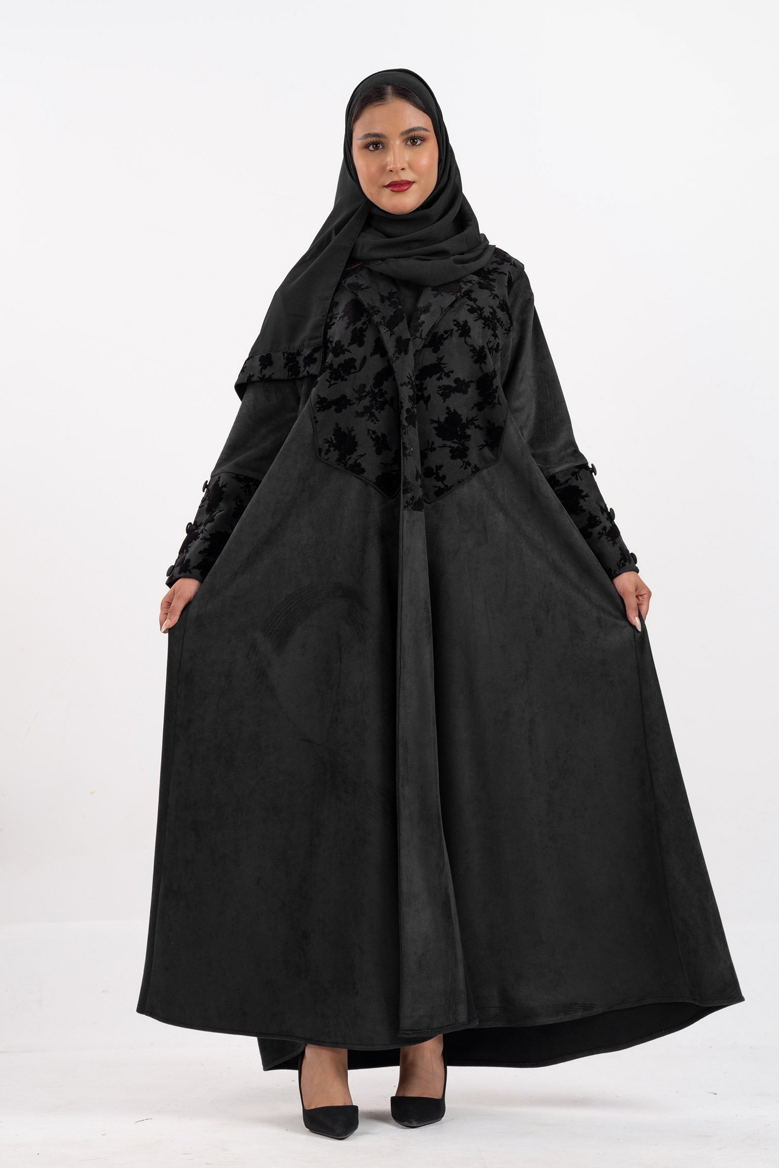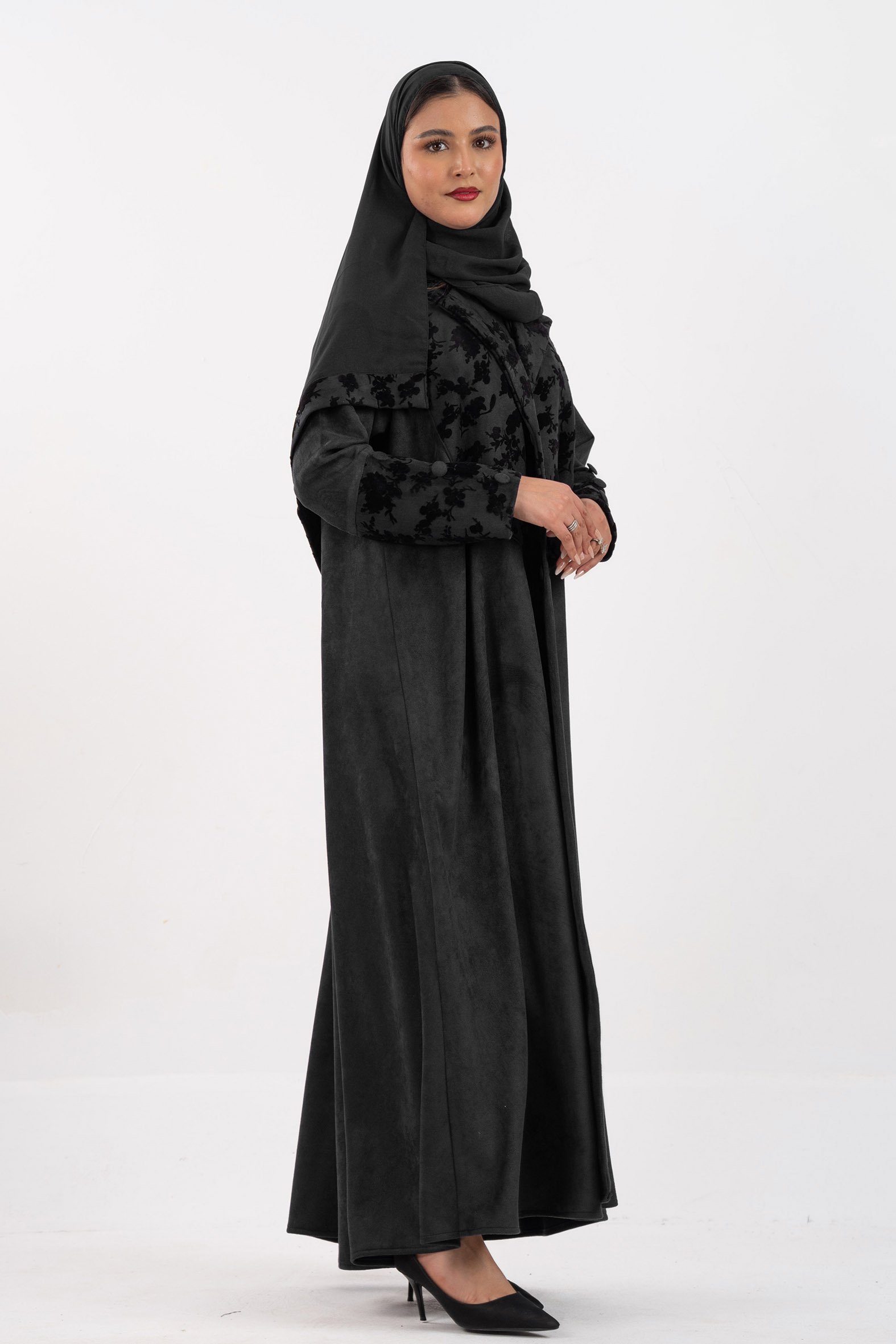زاهية – عباية شتوية نسمة اسود بتدخيلات جاكار برسم فاينل