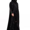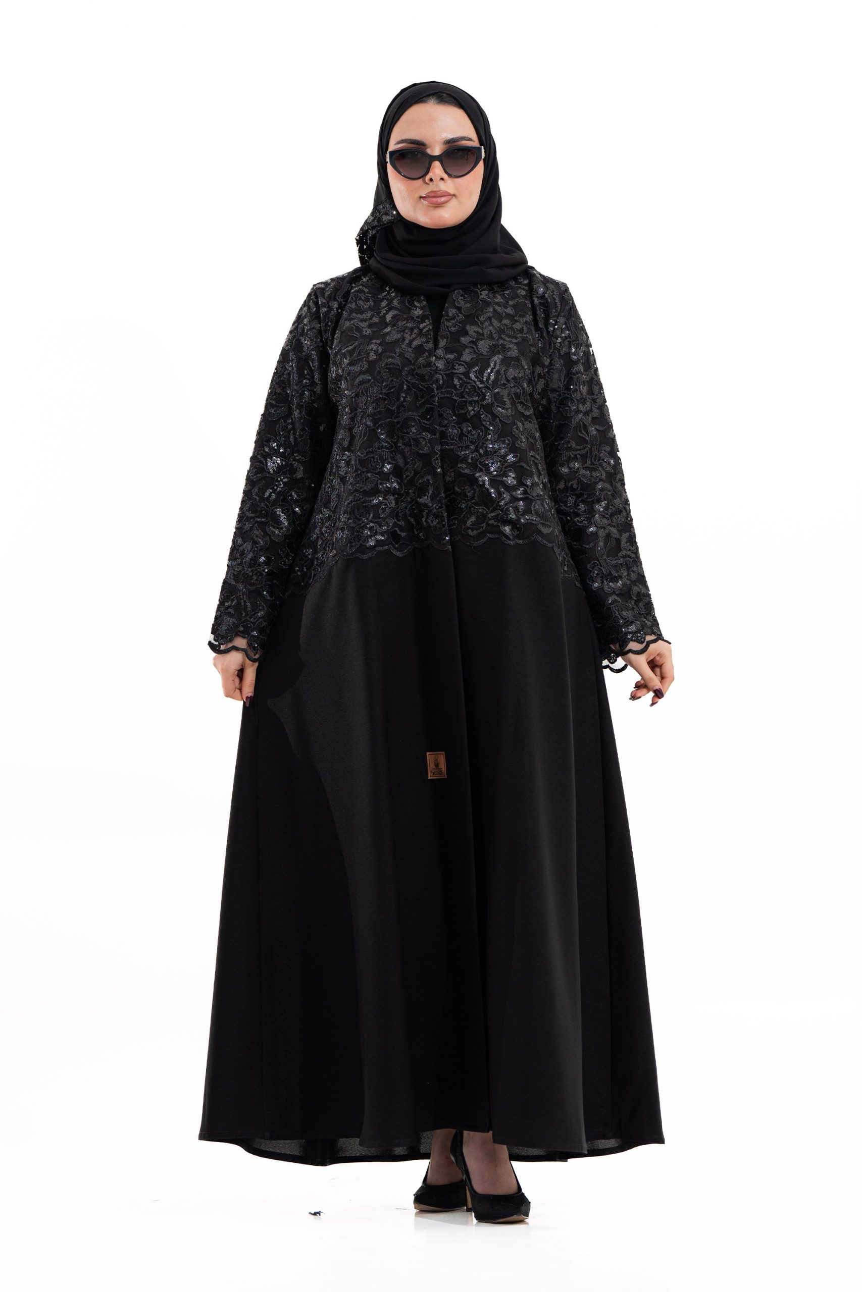 عباية أنيقة بتصميم عصري مصنوعة من قماش أسود فاخر ناعم الملمس، مزينة بتدخيلات قماش مطرز بنقوش راقية ومطعمة بتطريز لامع يضفي فخامة هادئة على الأكمام وواجهة العباية. تصميمها الانسيابي يمنحك راحة في الحركة وأناقة متوازنة، لتكون خيارًا مثاليًا للاستخدام اليومي والطلعات الرسمية بأسلوب راقٍ وعصري. تأتي مع تنسيق أنيق يسهل اعتماده لمختلف الإطلالات.
