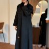 زاهية – عباية بياقة واسعة مع تطريز كحلي ع الاكمام