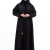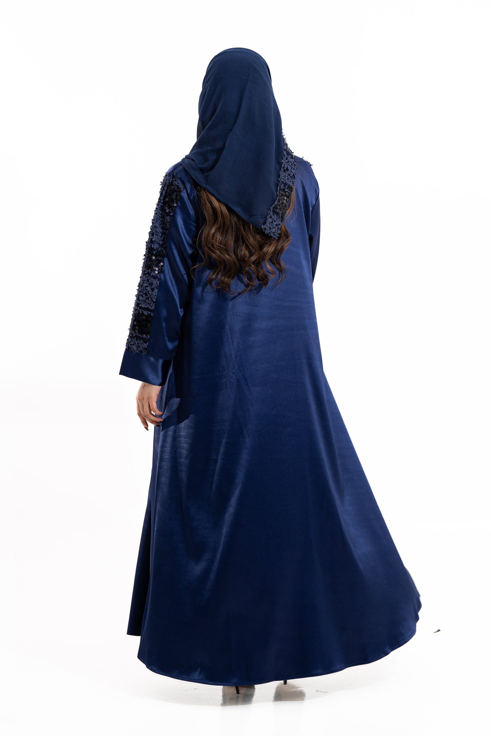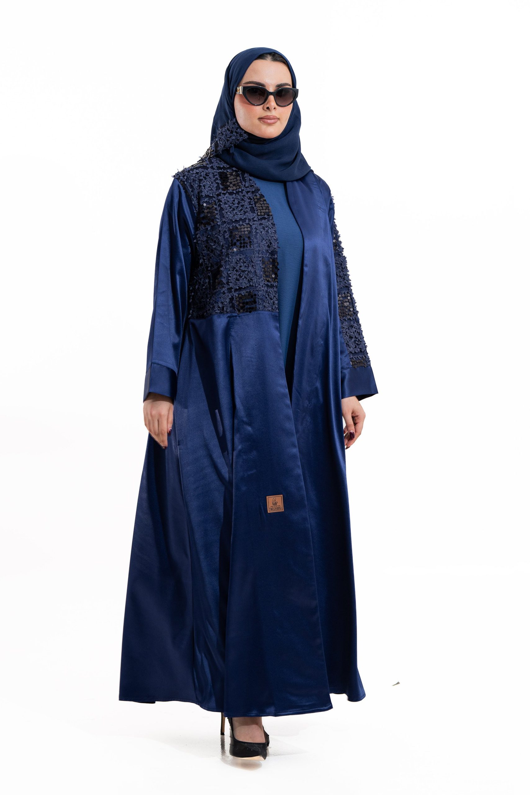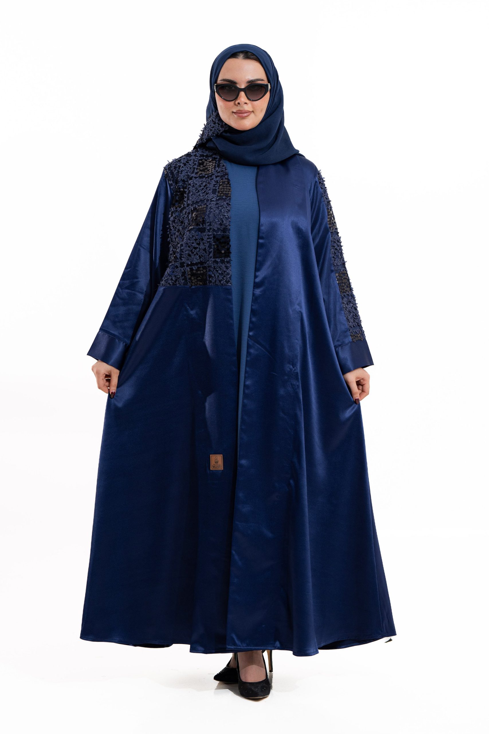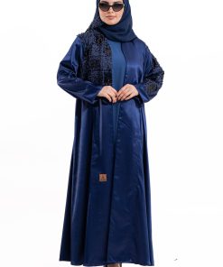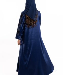 زاهية – عباية بياقة واسعة مع تطريز كحلي ع الاكمام