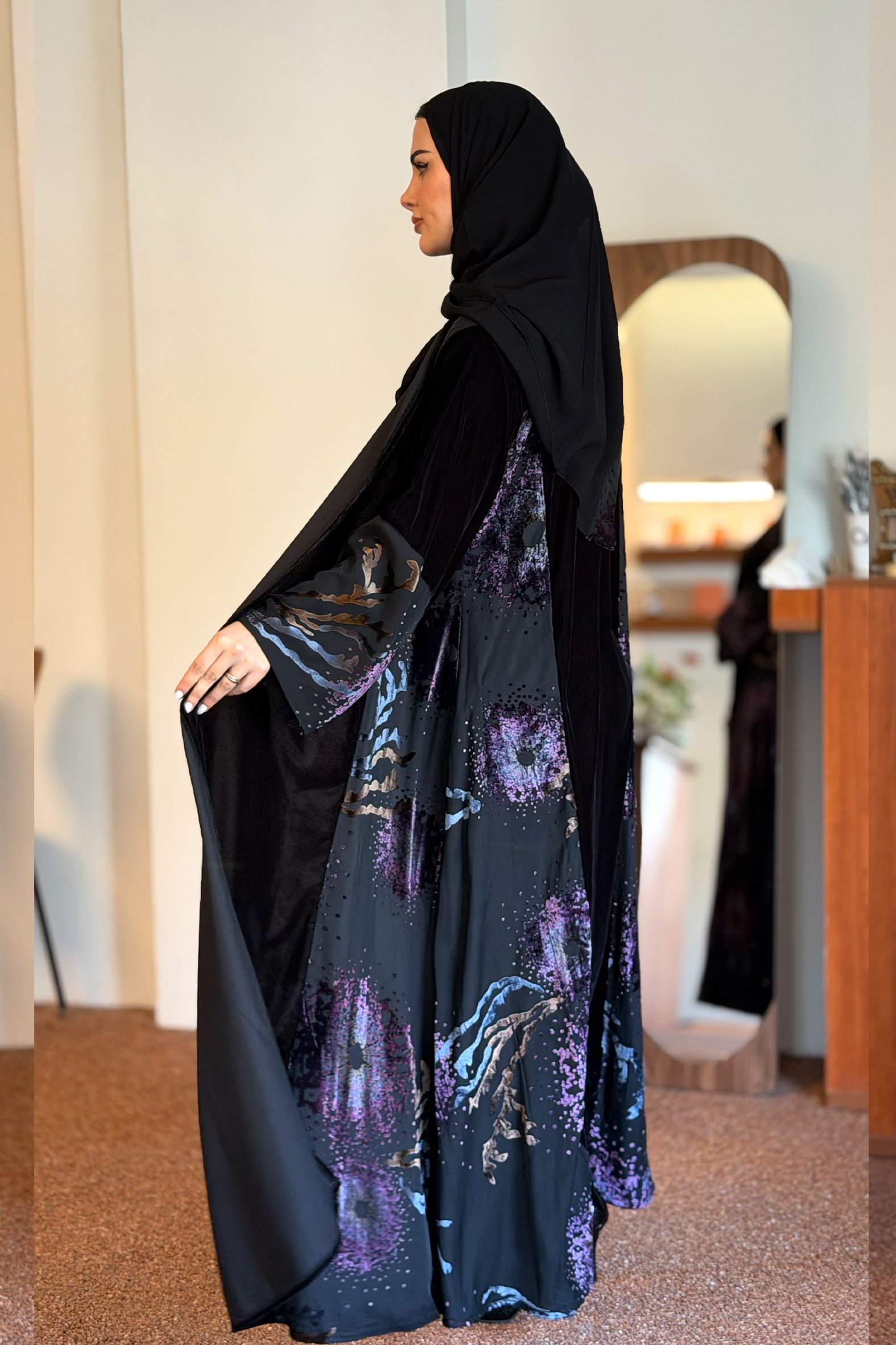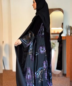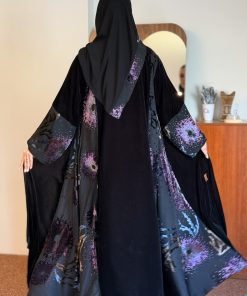 زاهية – عباية غلا بقماش مخمل بنفسجي&بحري