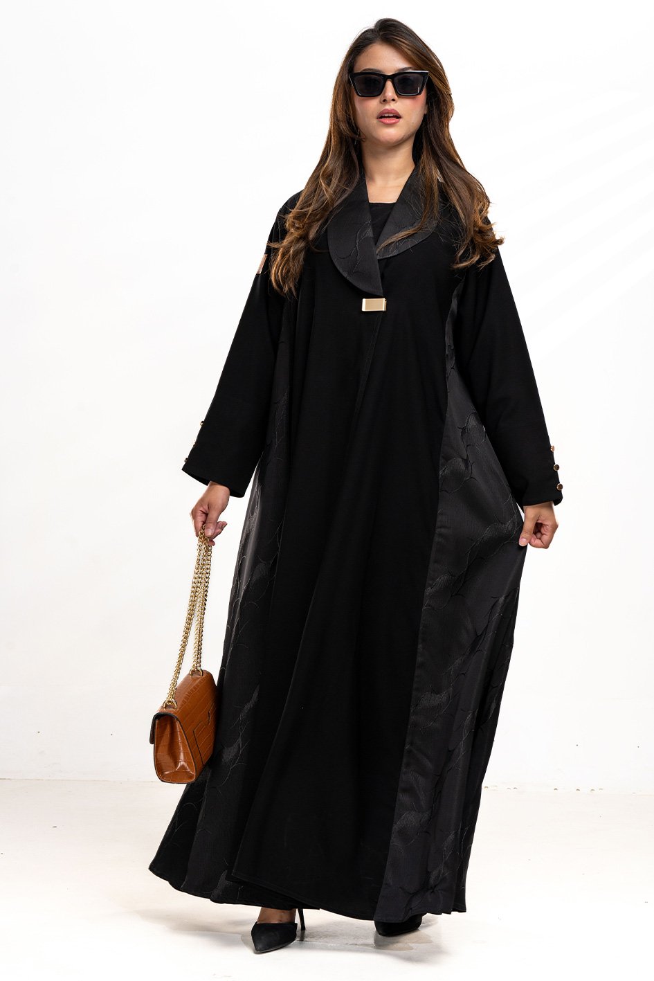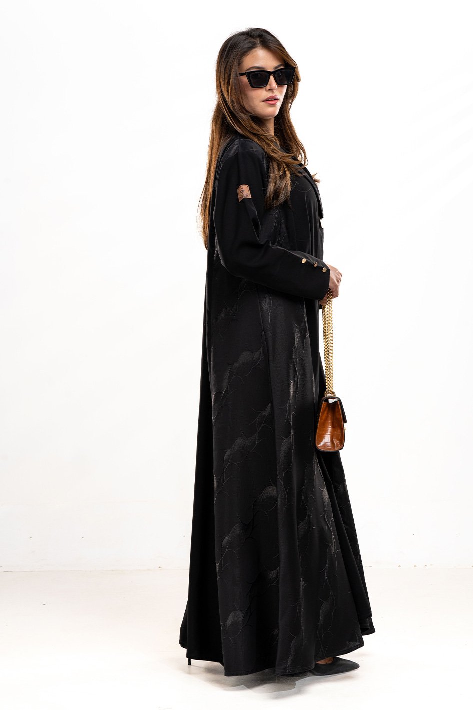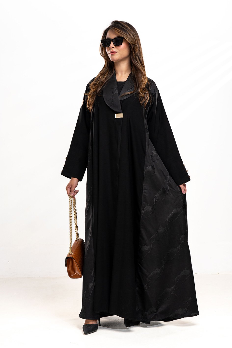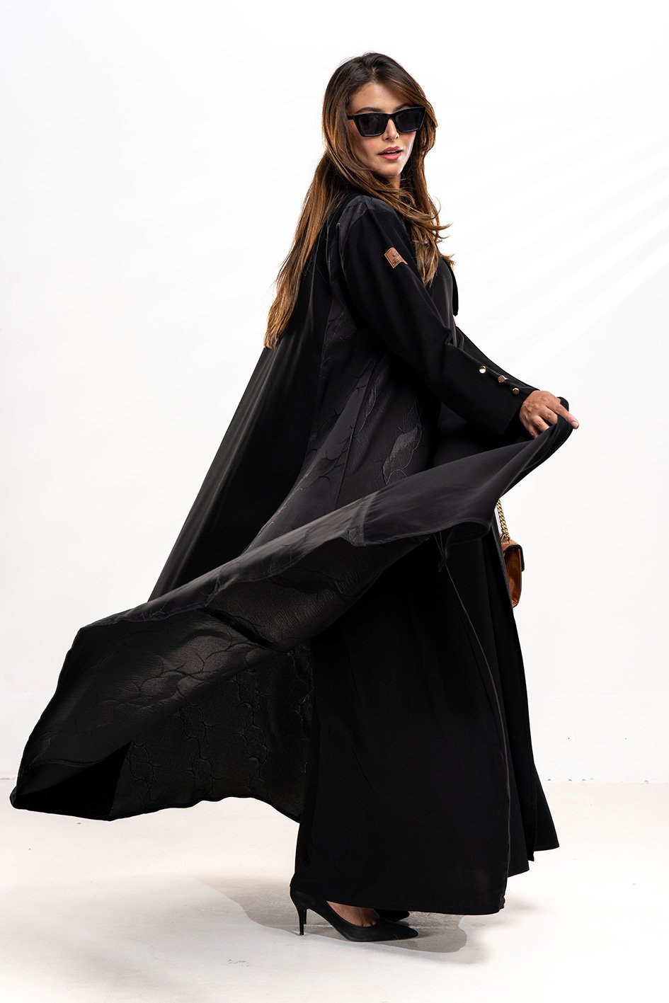 عباية كلوش منسوجة من قماش الكريب الملكي الفتنامي بتدخيلات قماش الجاكار خلف العباية صممت لتناسب الاستحدام اليومي والطلعات تصميمها الناعم يضفي لمسة من الجاذبية والرقي مما يجعلها مثالية للإطلالات المميزة صممت بقصه انسيابية العباية ناعمة بالحركة لتلائم كل مناسباتك. مع طرحة مجانية وجربي تنسيقها مع فستان عباية