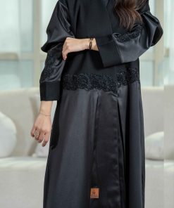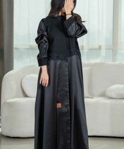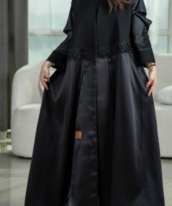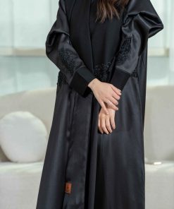 زاهية – عباية بياقة واسعة مع تطريز كحلي ع الاكمام