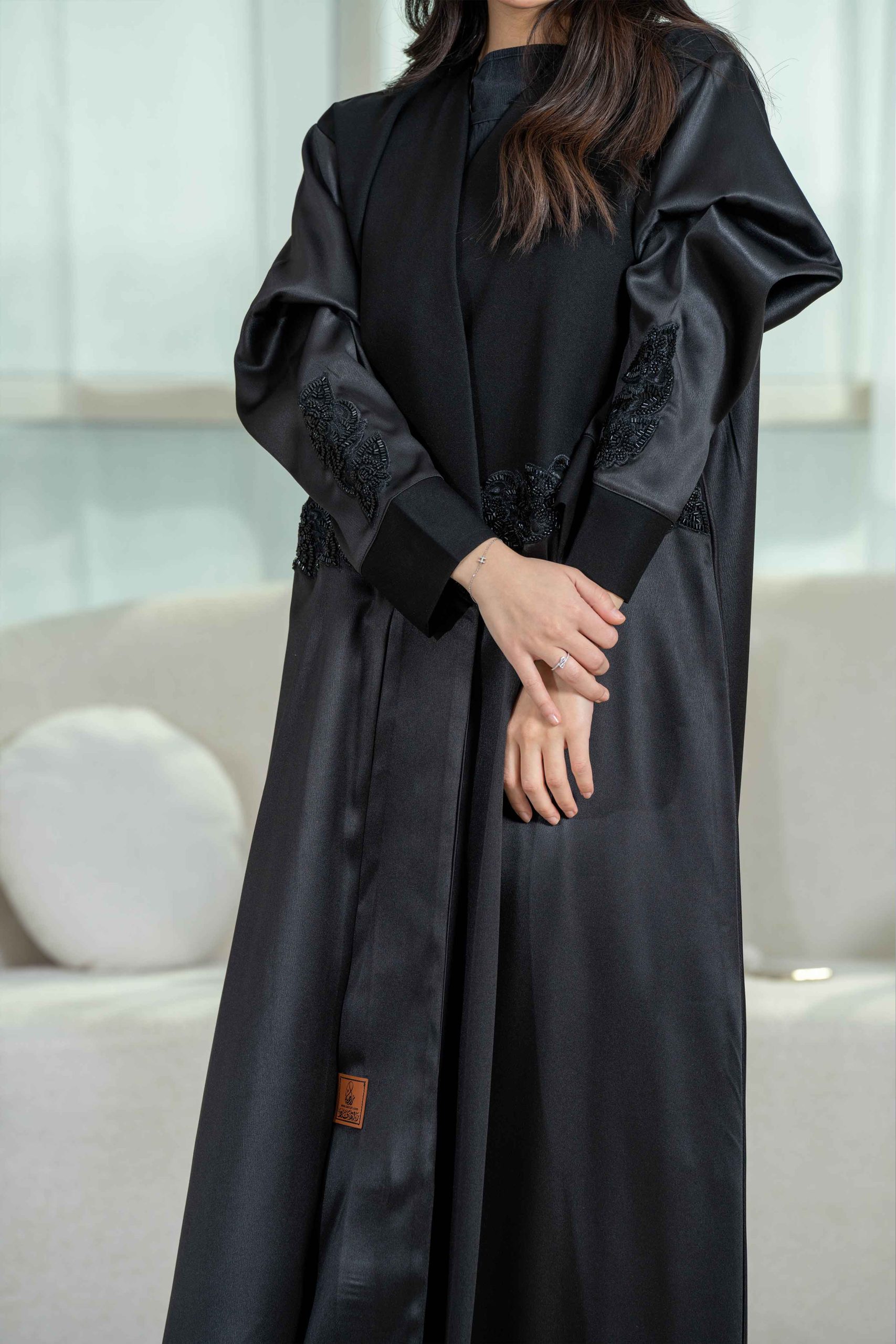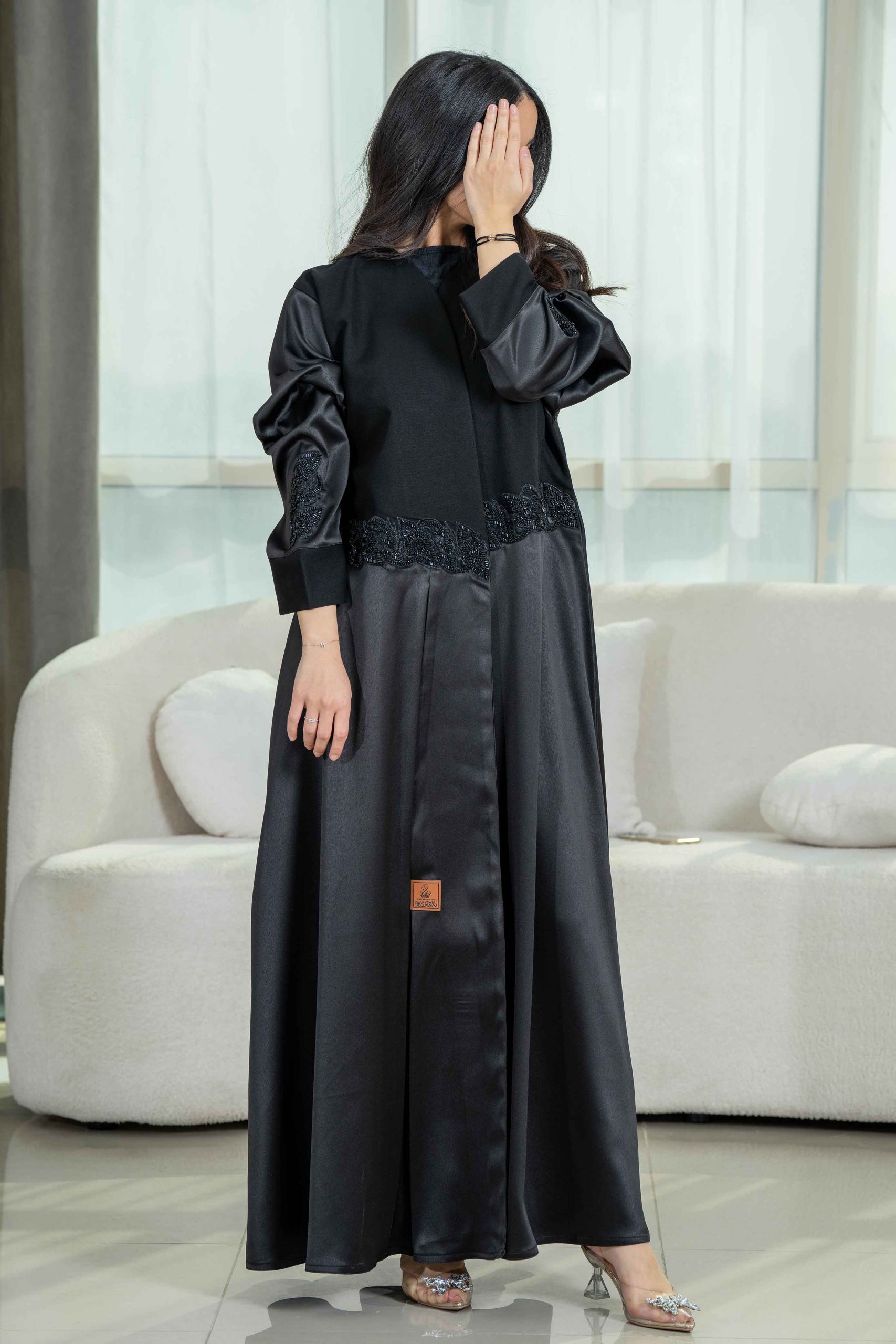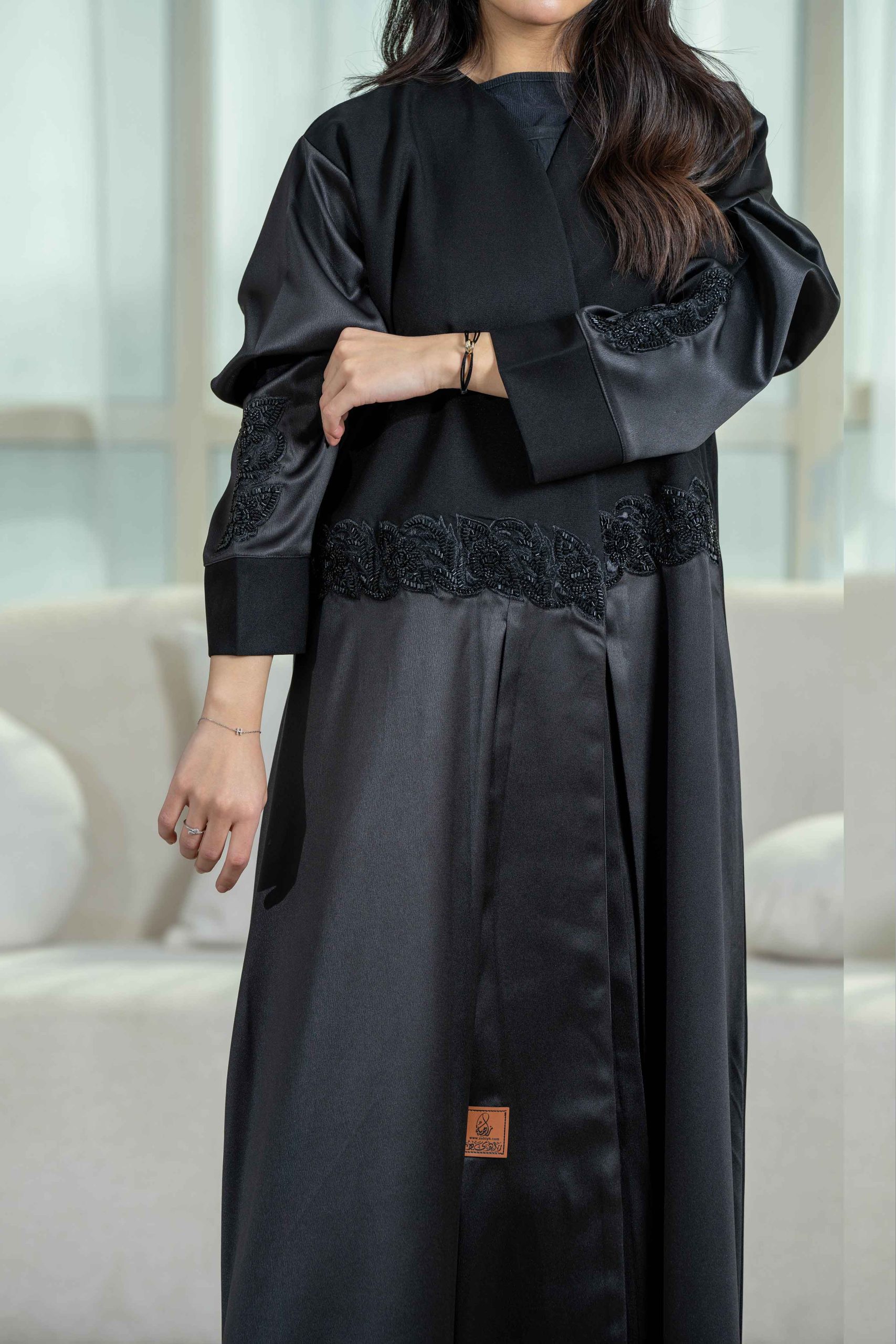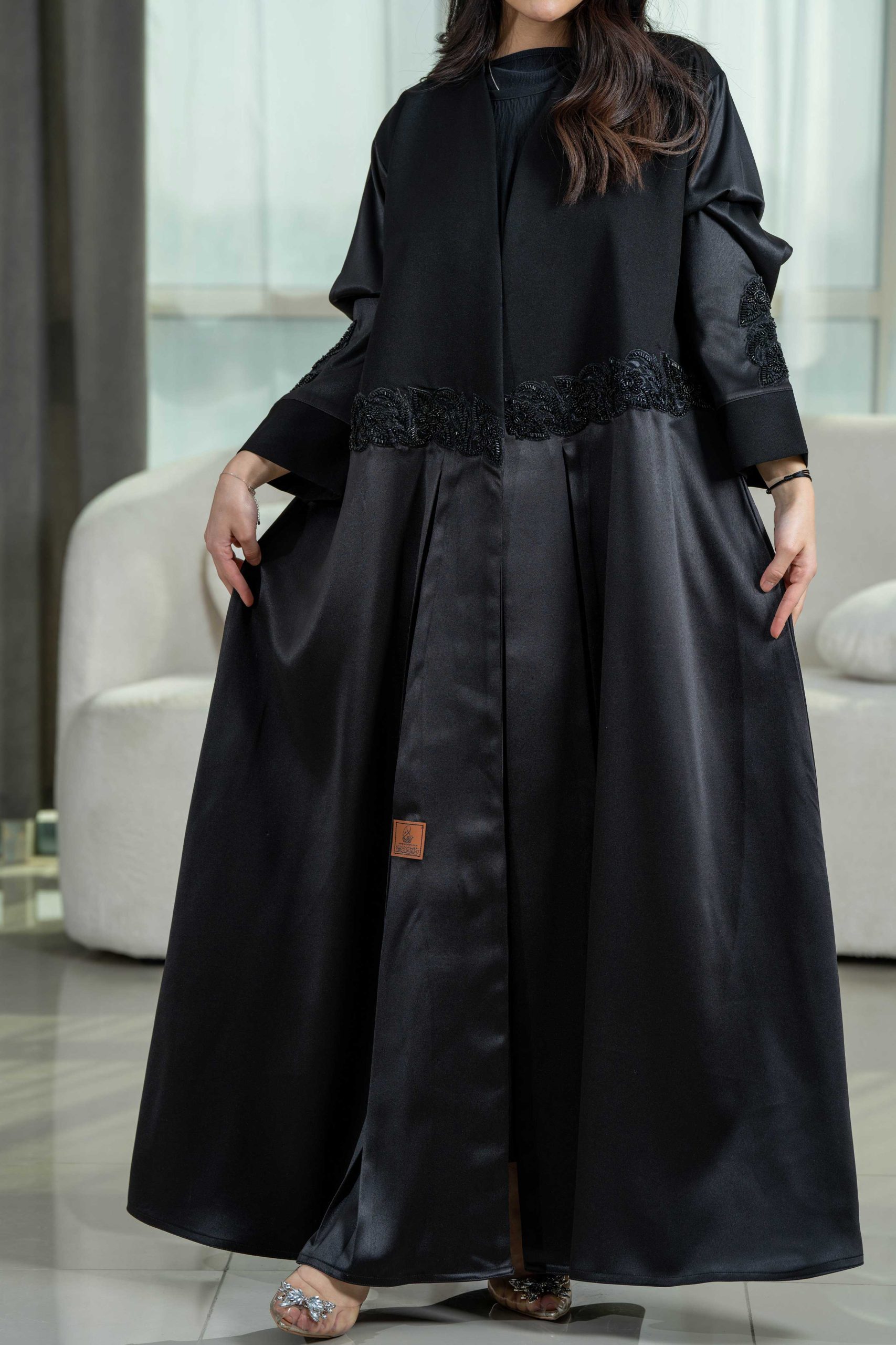 زاهية – عباية كلوش أنيقة بتدخيلات كرستال على الجوانب والأكمام