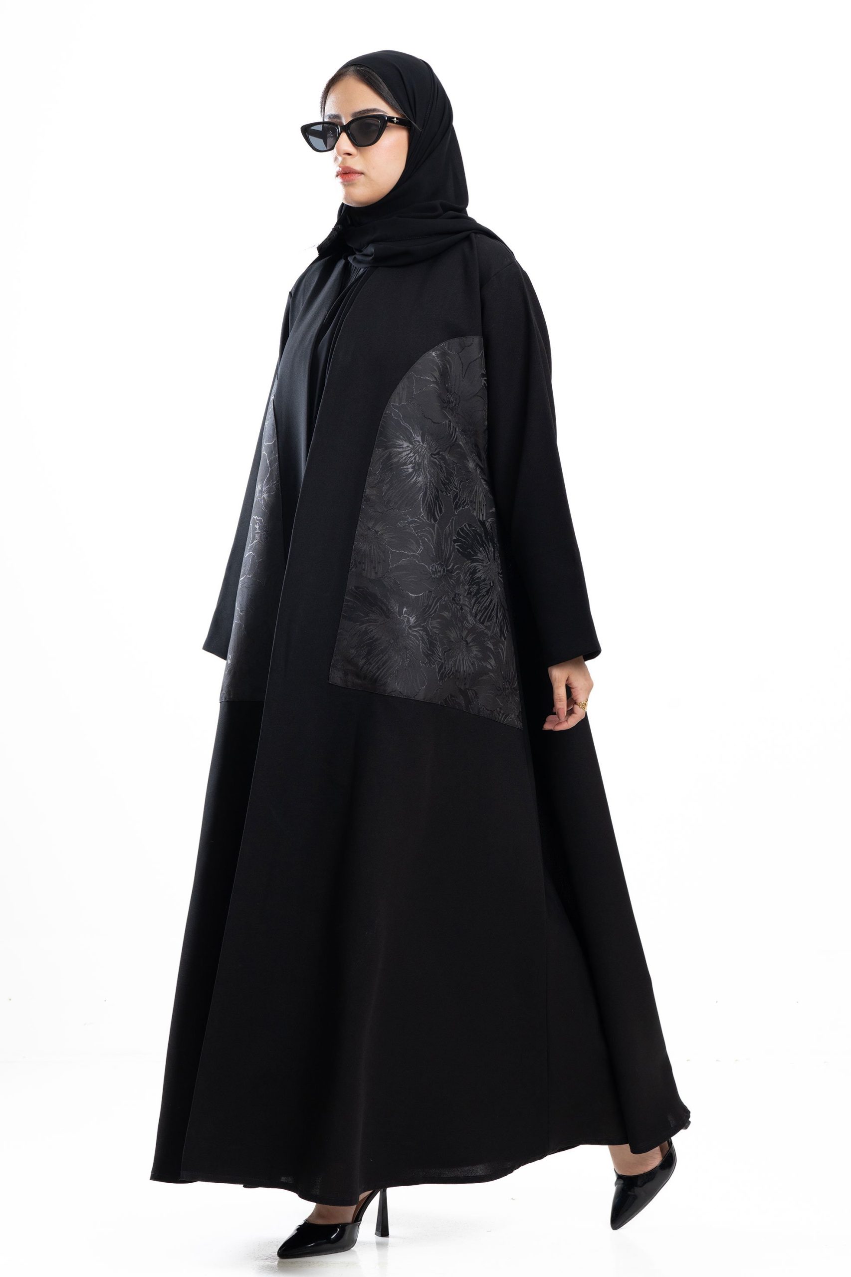 زاهية – عباية كلوش بتدخيلة جاكار أسود