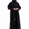 زاهية – عباية بياقة واسعة مع تطريز كحلي ع الاكمام
