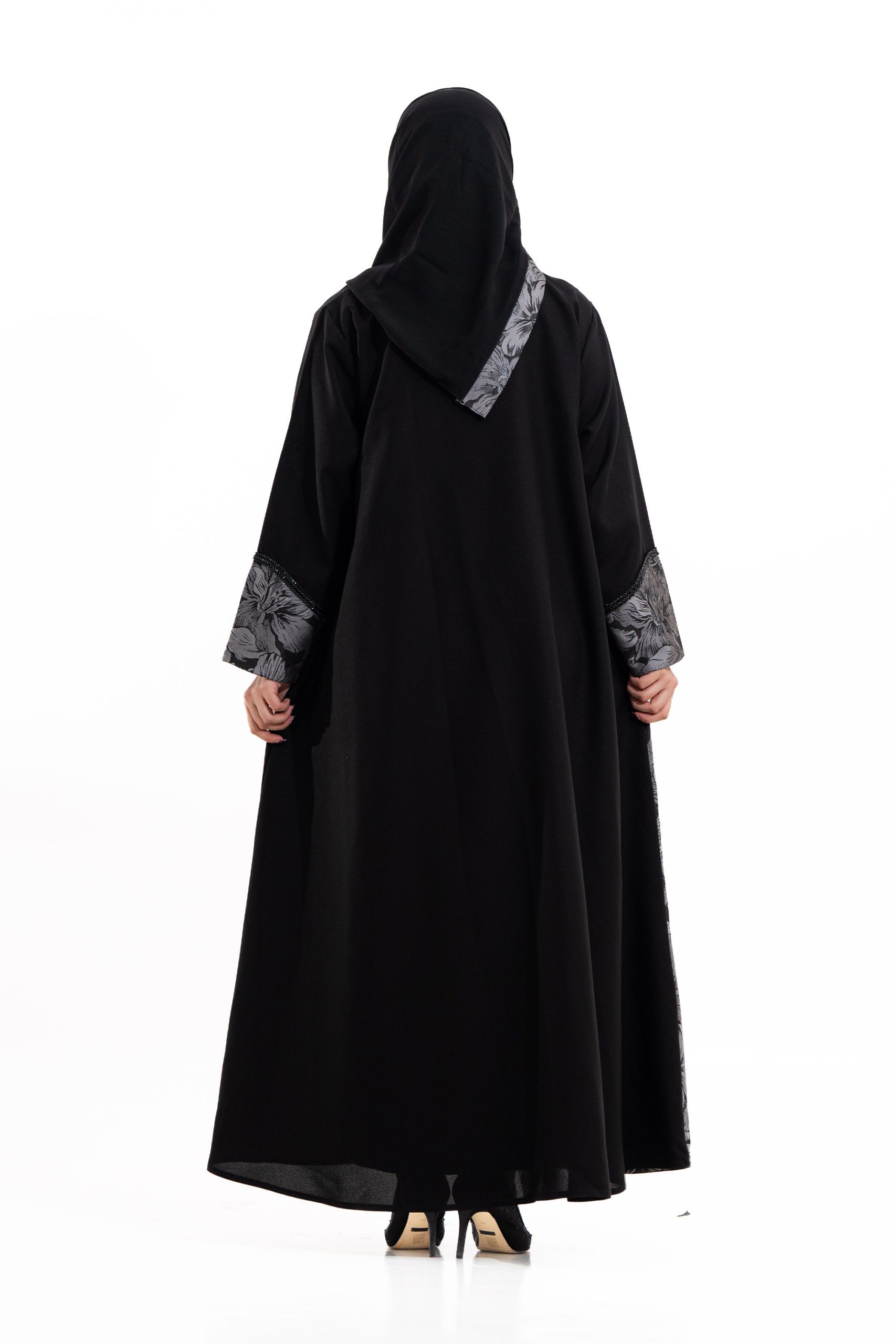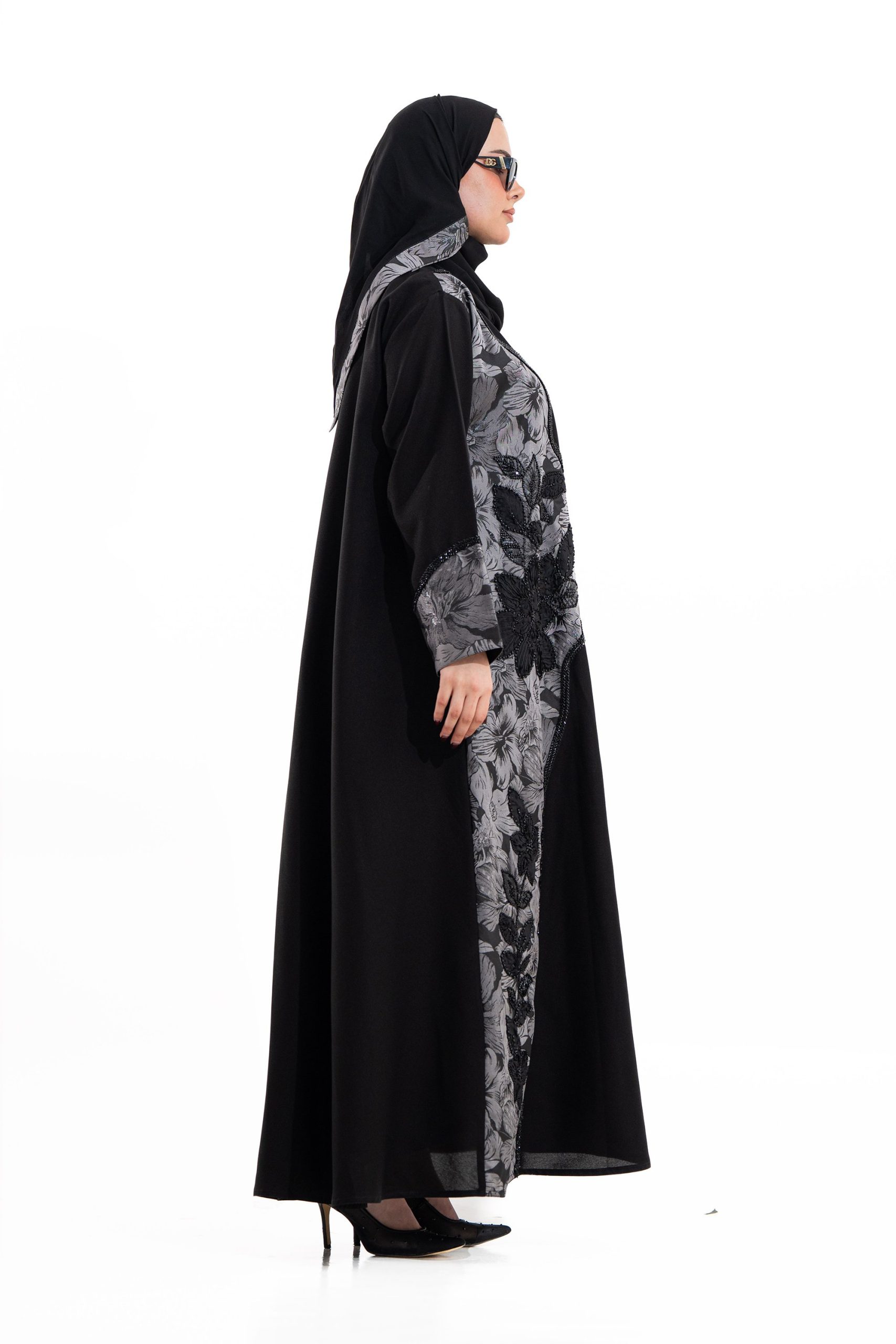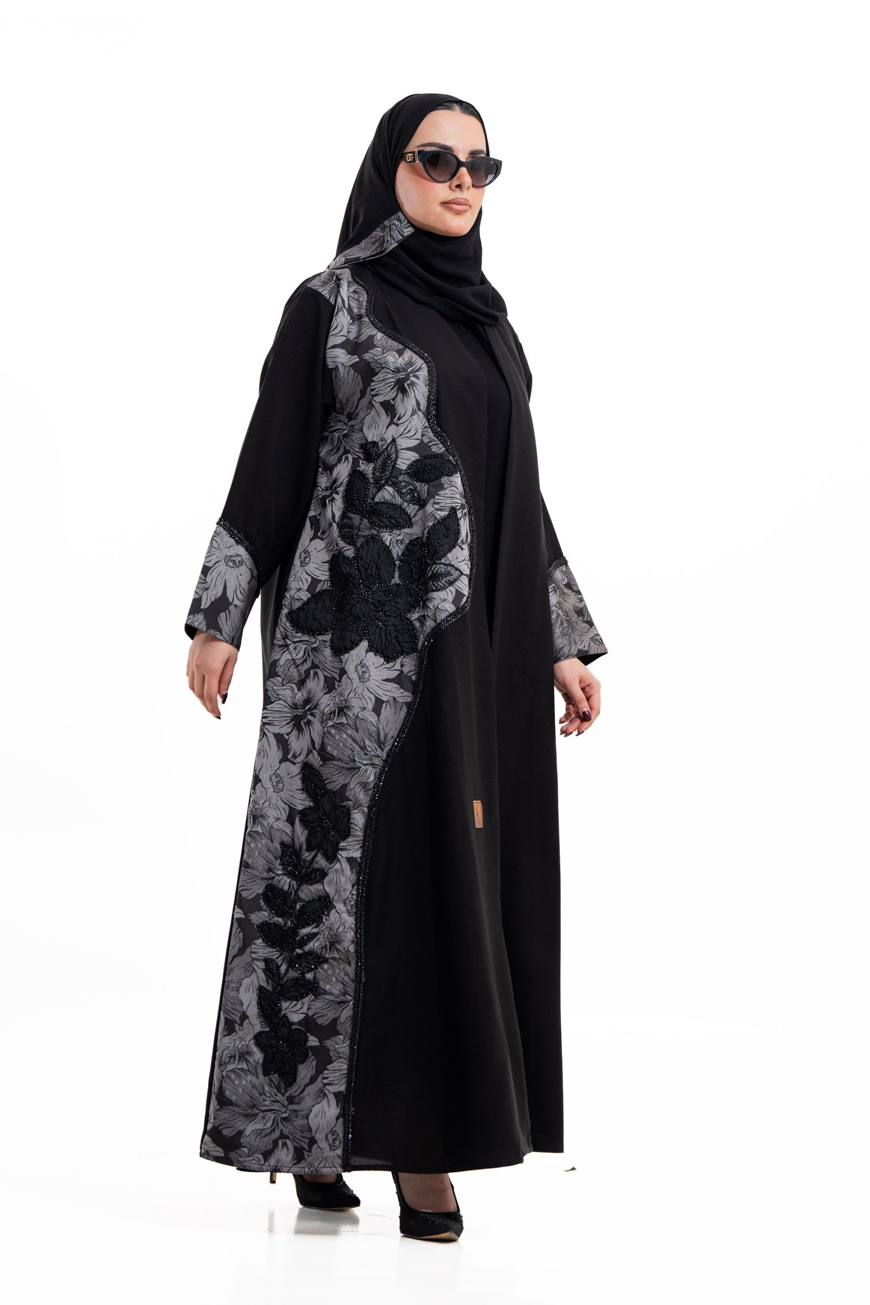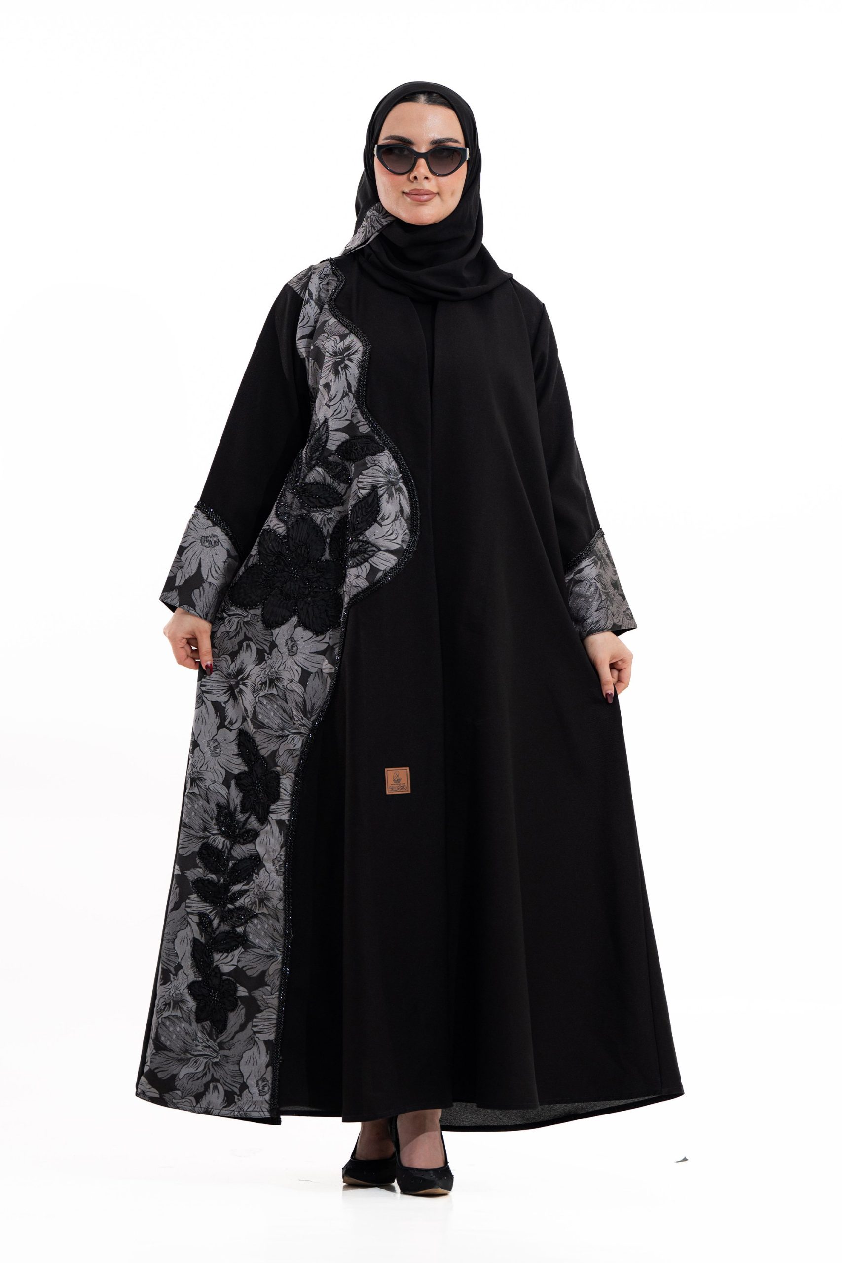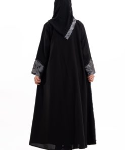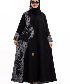عباية أنيقة بتصميم عصري مصنوعة من قماش أسود فاخر ناعم الملمس، مزينة بتدخيلات قماش مطرز بنقوش هندسية راقية ومطعمة بتطريز لامع يضفي فخامة هادئة على الأكمام وواجهة العباية. تصميمها الانسيابي يمنحك راحة في الحركة وأناقة متوازنة، لتكون خيارًا مثاليًا للاستخدام اليومي والطلعات الرسمية بأسلوب راقٍ وعصري. تأتي مع تنسيق أنيق يسهل اعتماده لمختلف الإطلالات.