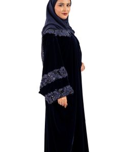 زاهية – عباية مرام مخمل كحلي بورد وترتر