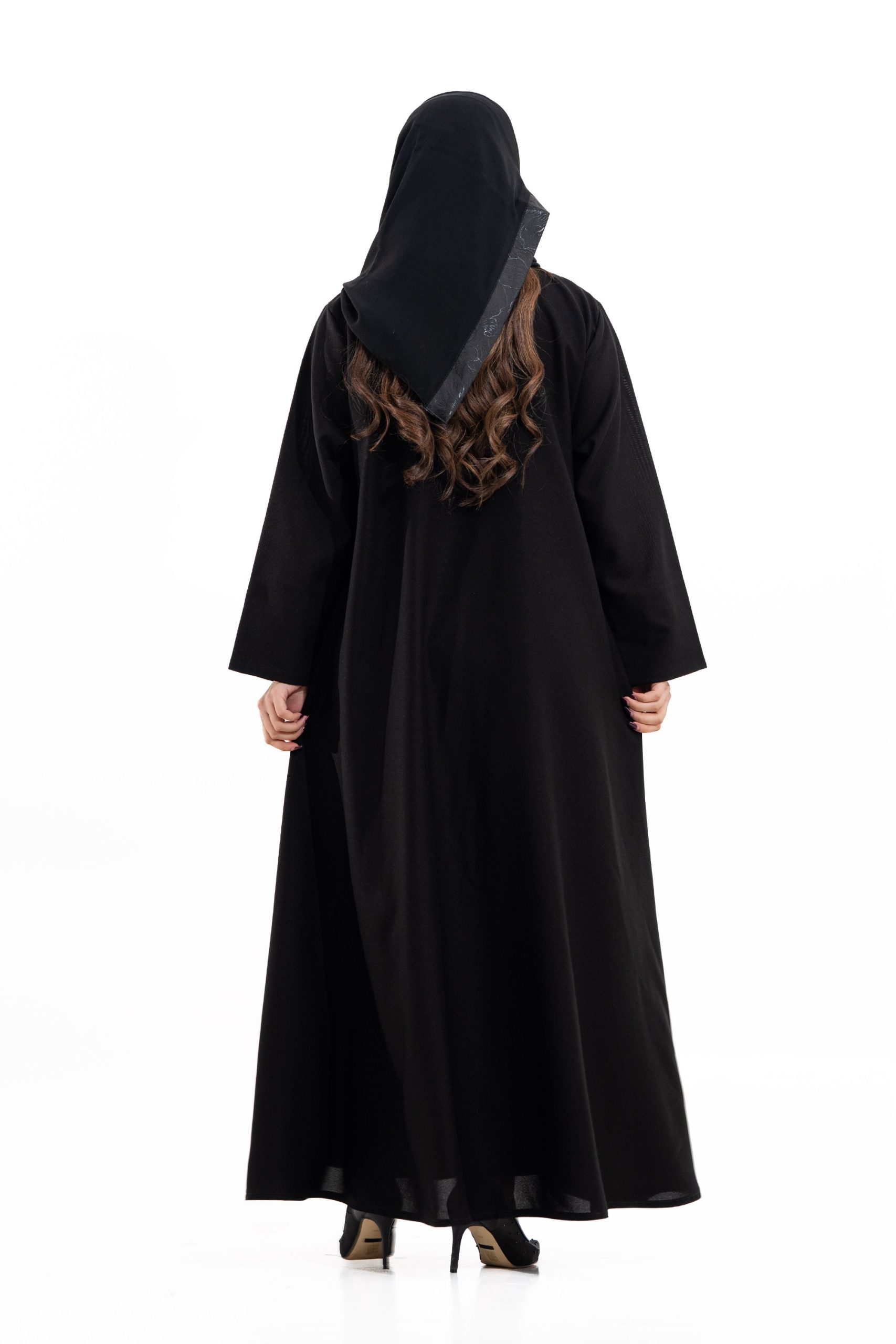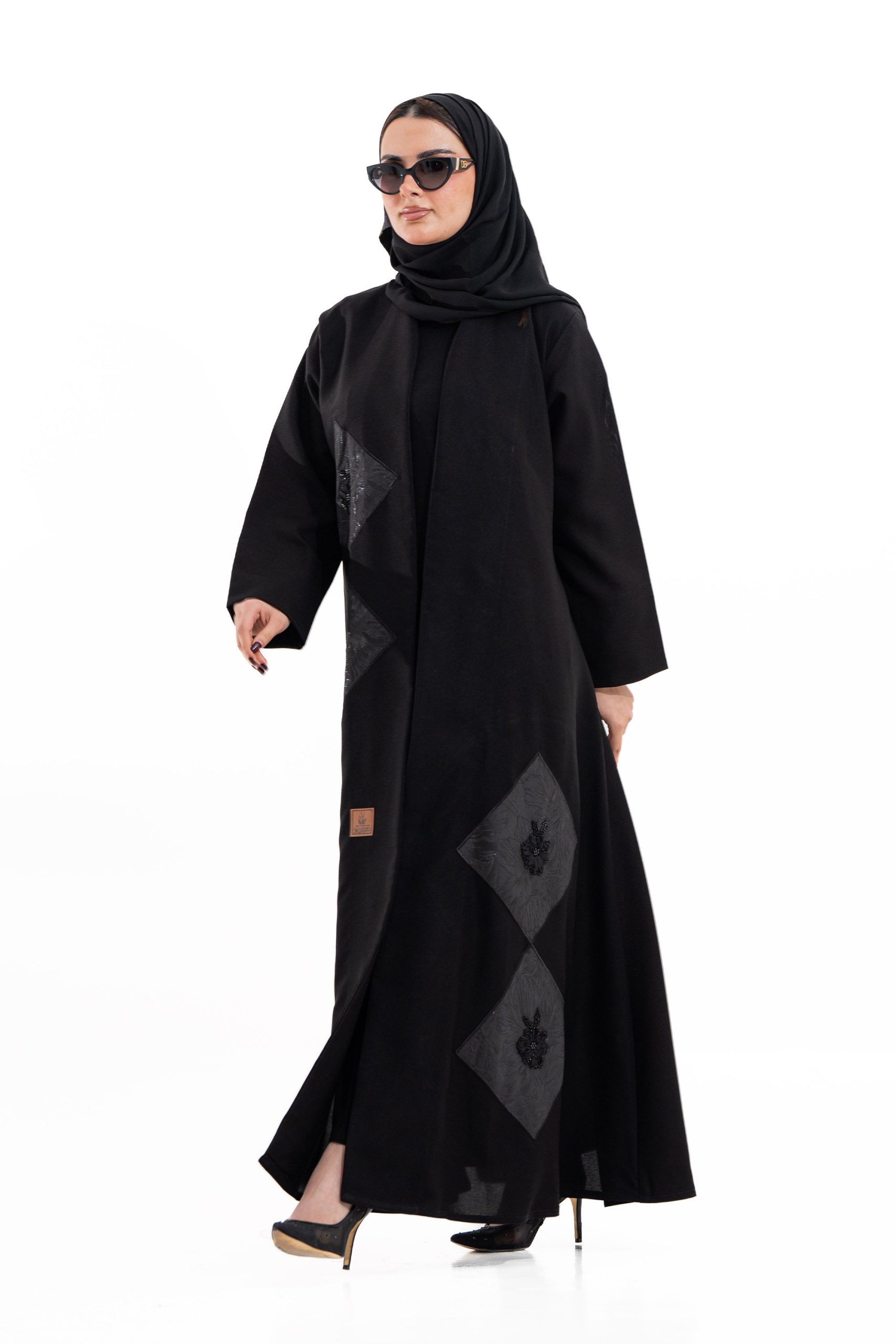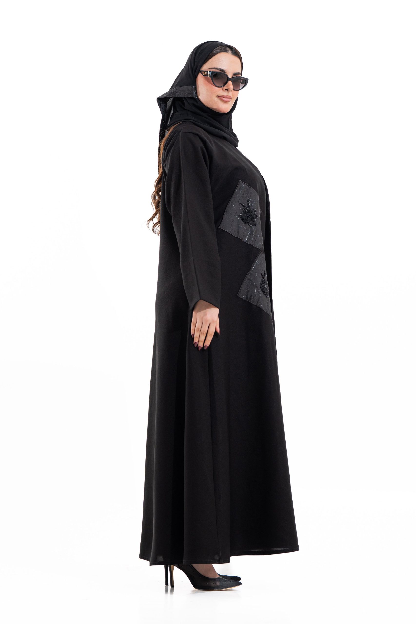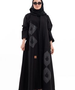 عباية أنيقة بتصميم عصري مصنوعة من قماش أسود فاخر ناعم الملمس، مزينة بتدخيلات قماش مطرز بنقوش هندسية راقية ومطعمة بتطريز لامع يضفي فخامة هادئة على الأكمام وواجهة العباية. تصميمها الانسيابي يمنحك راحة في الحركة وأناقة متوازنة، لتكون خيارًا مثاليًا للاستخدام اليومي والطلعات الرسمية بأسلوب راقٍ وعصري. تأتي مع تنسيق أنيق يسهل اعتماده لمختلف الإطلالات.