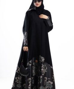 زاهية – عباية بياقة واسعة مع تطريز كحلي ع الاكمام