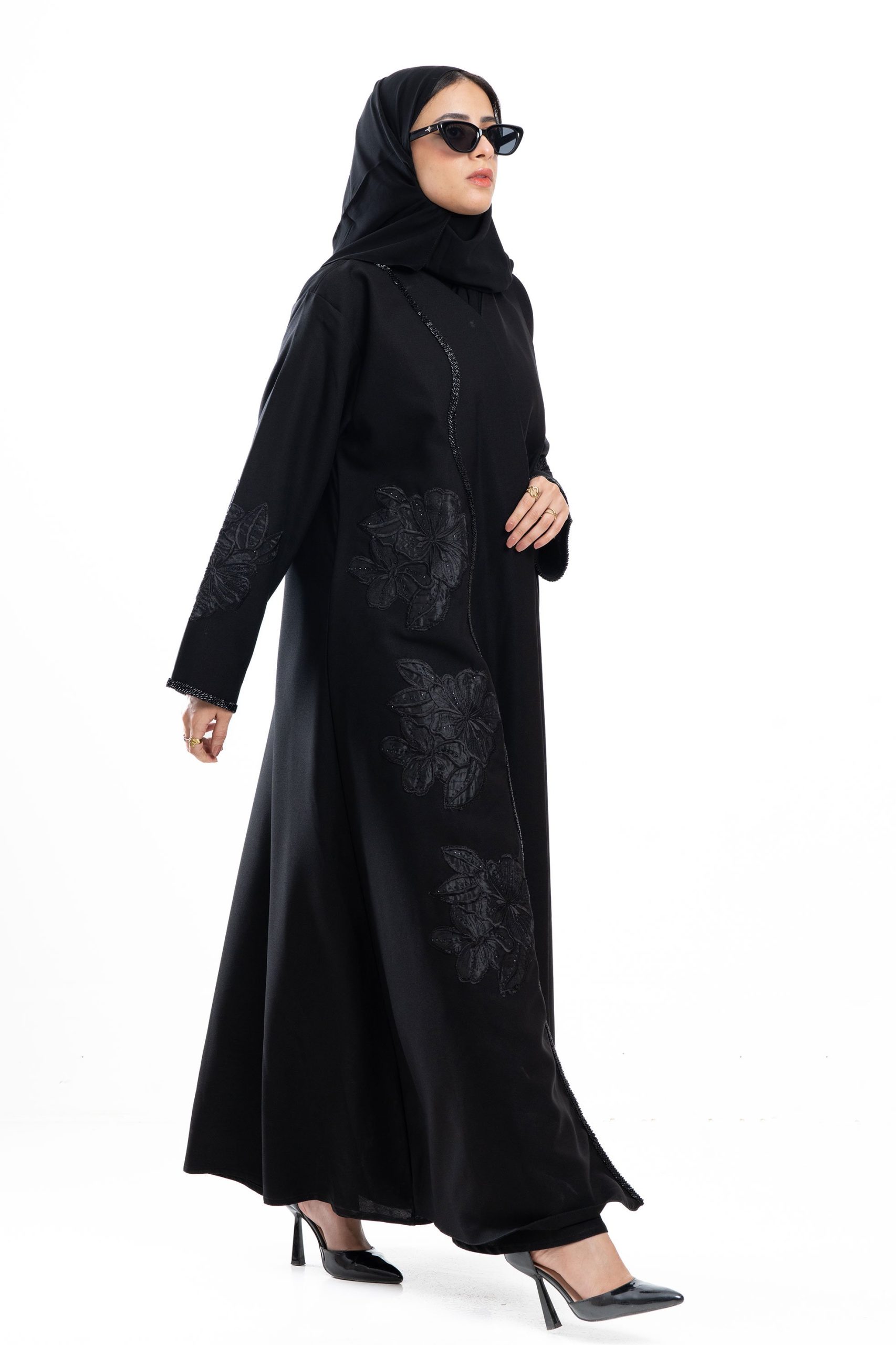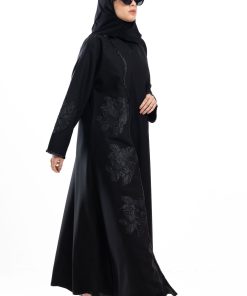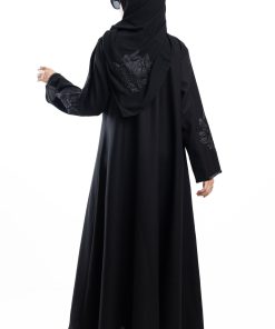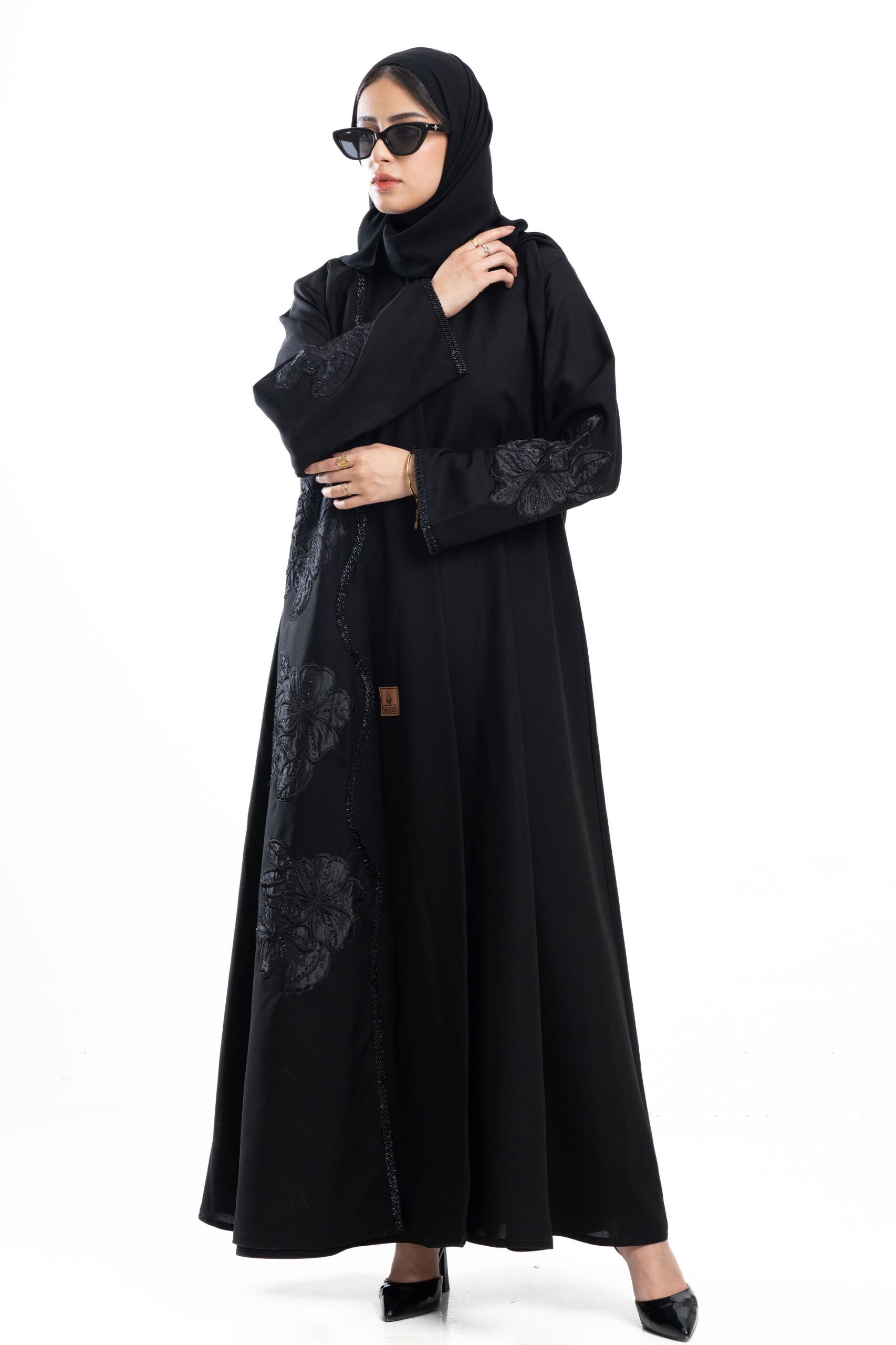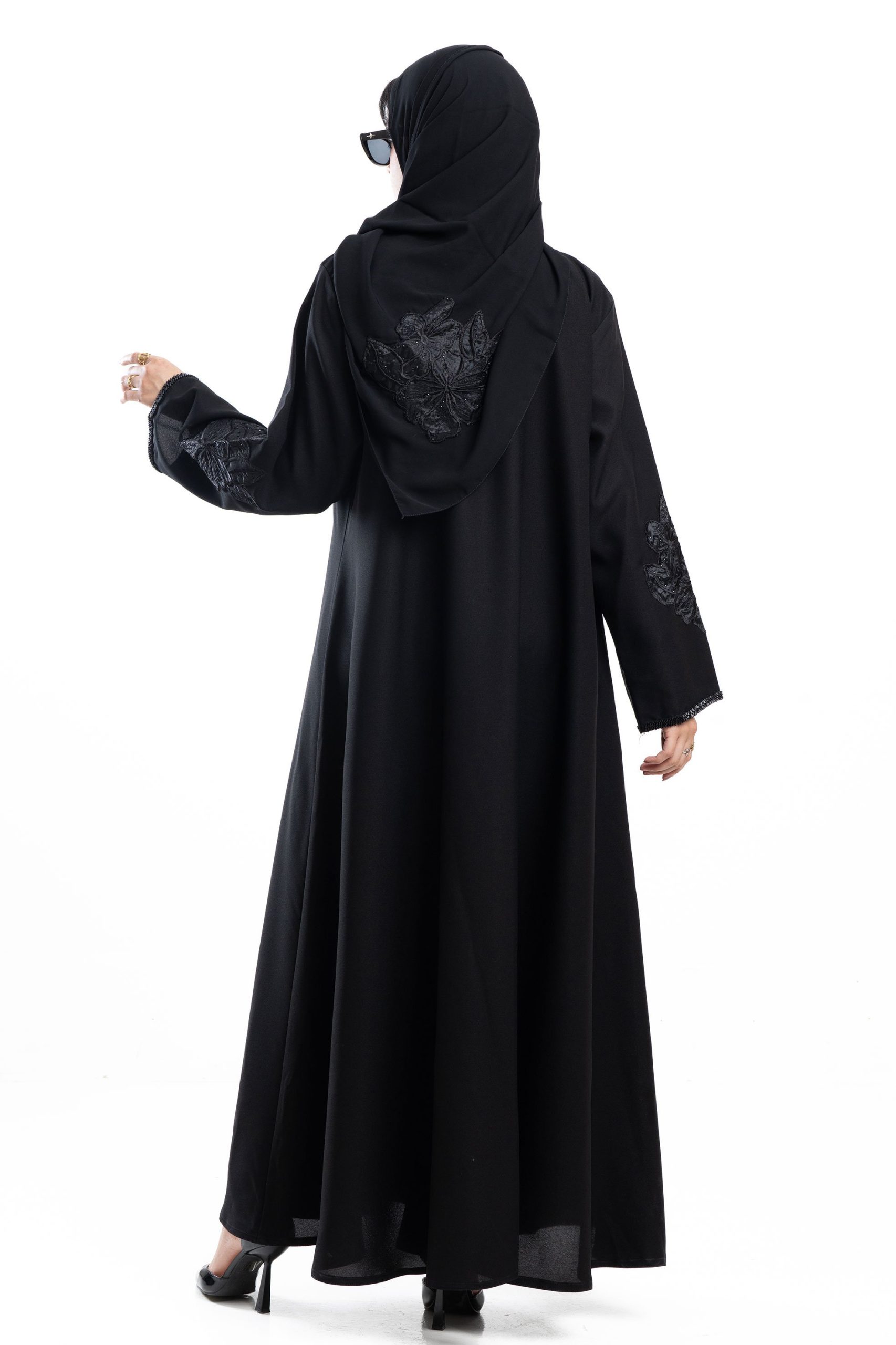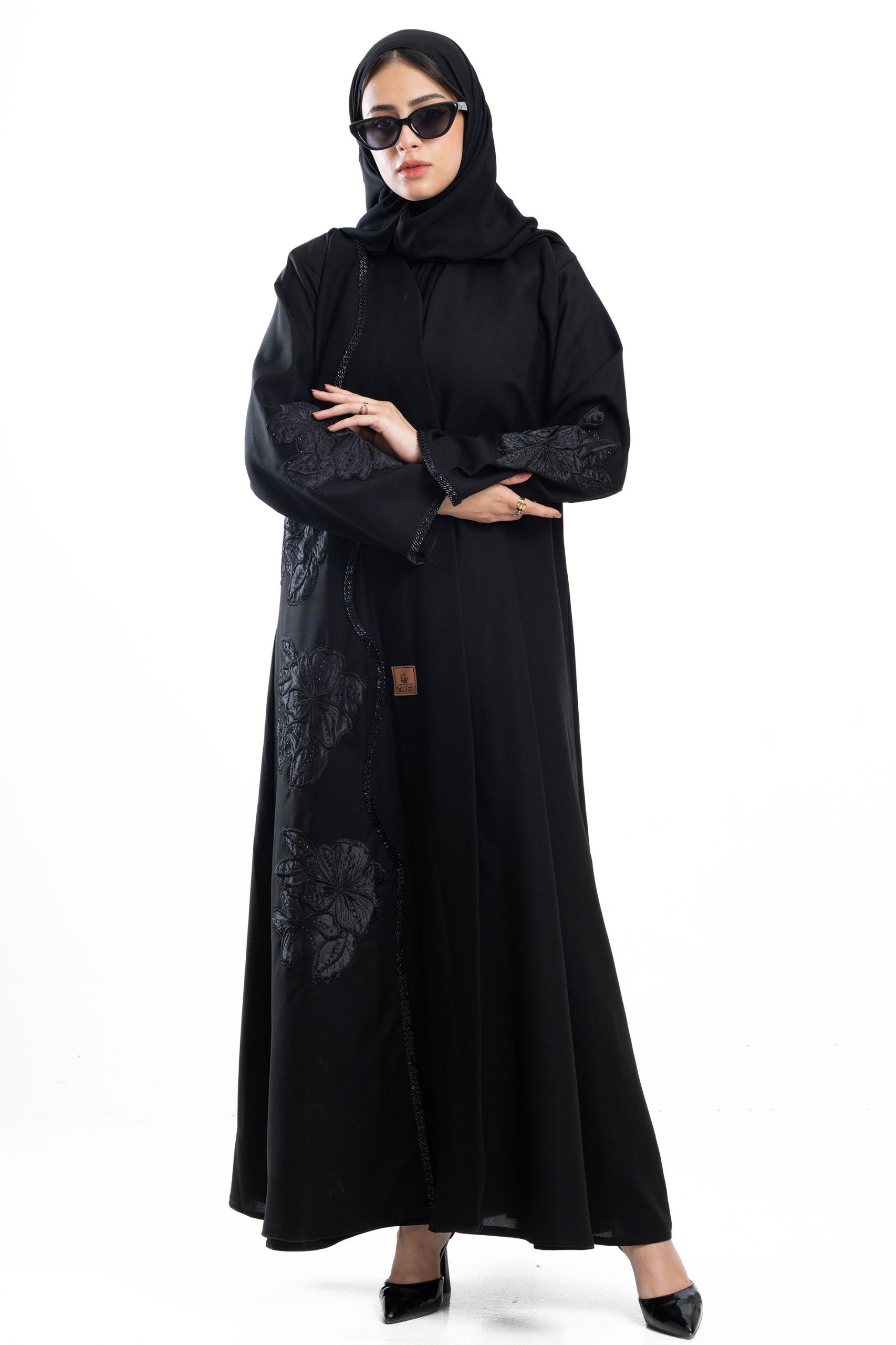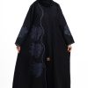 زاهية – عباية بياقة واسعة مع تطريز كحلي ع الاكمام