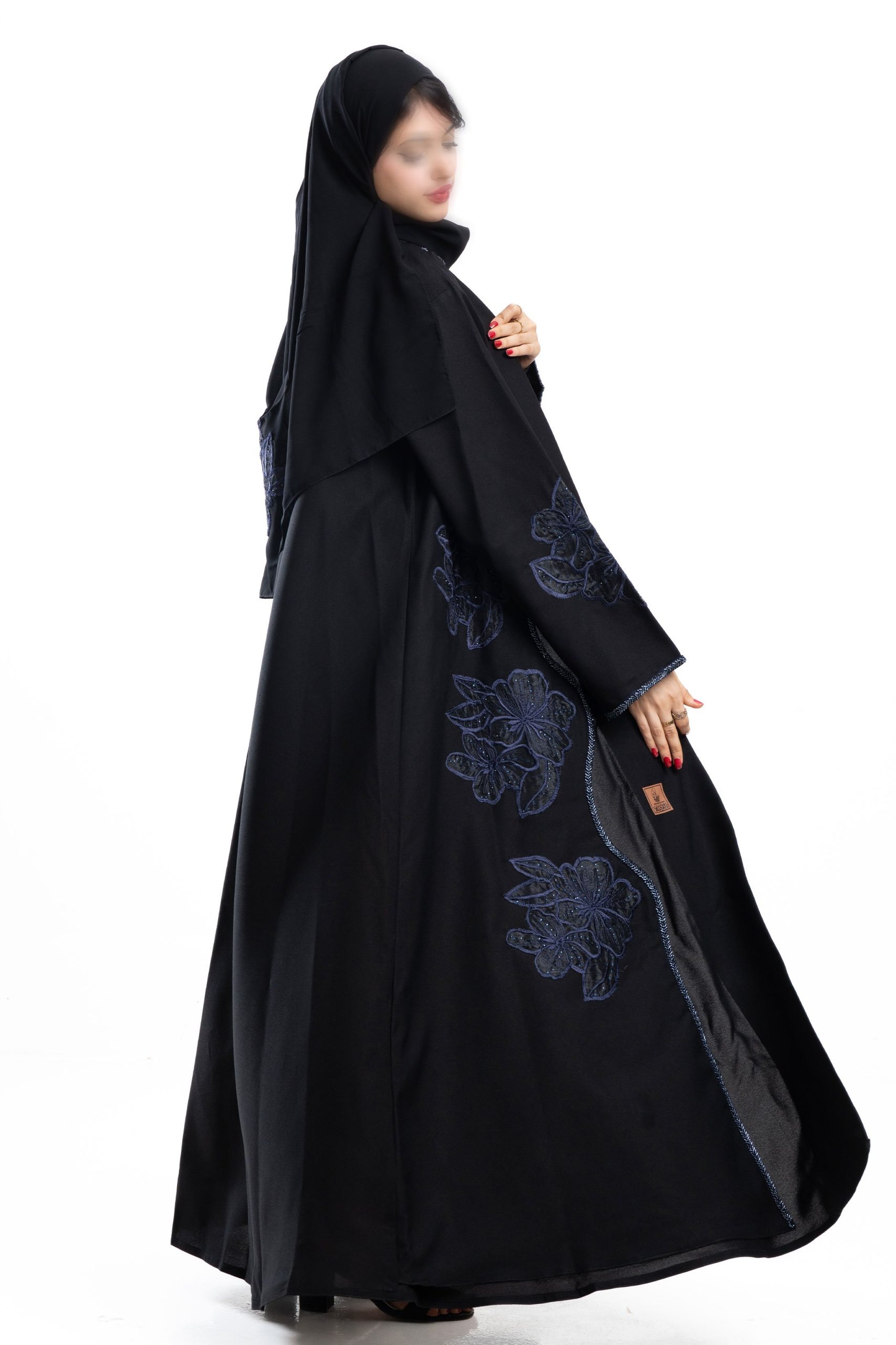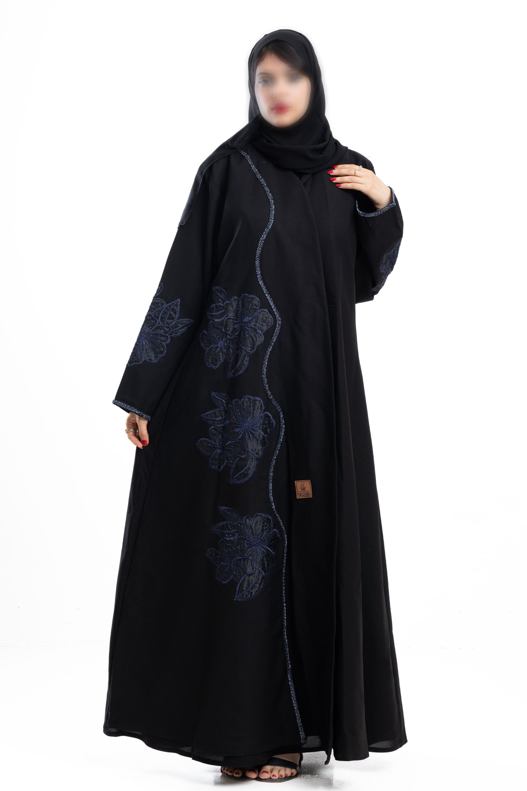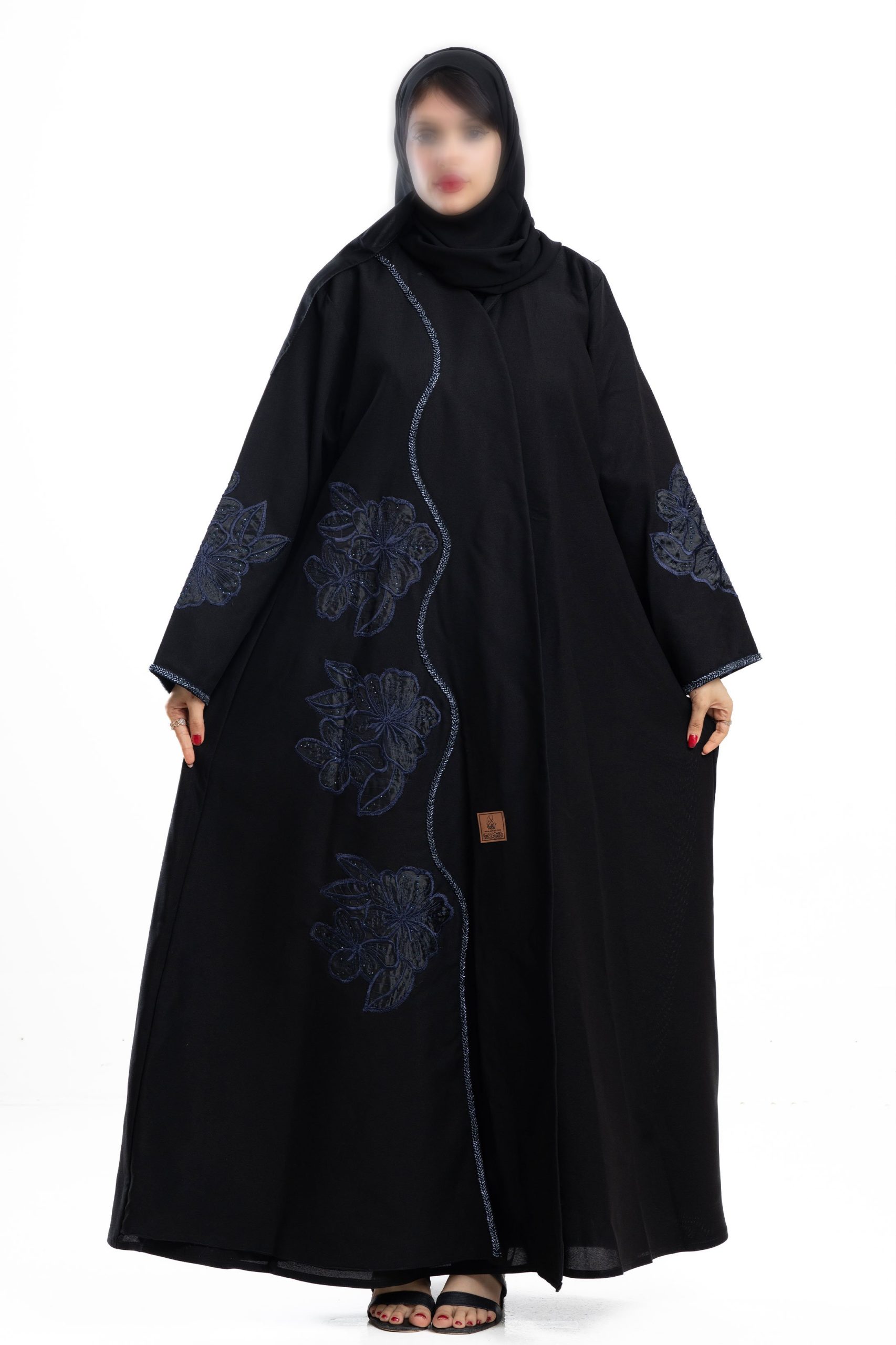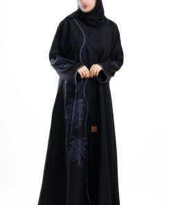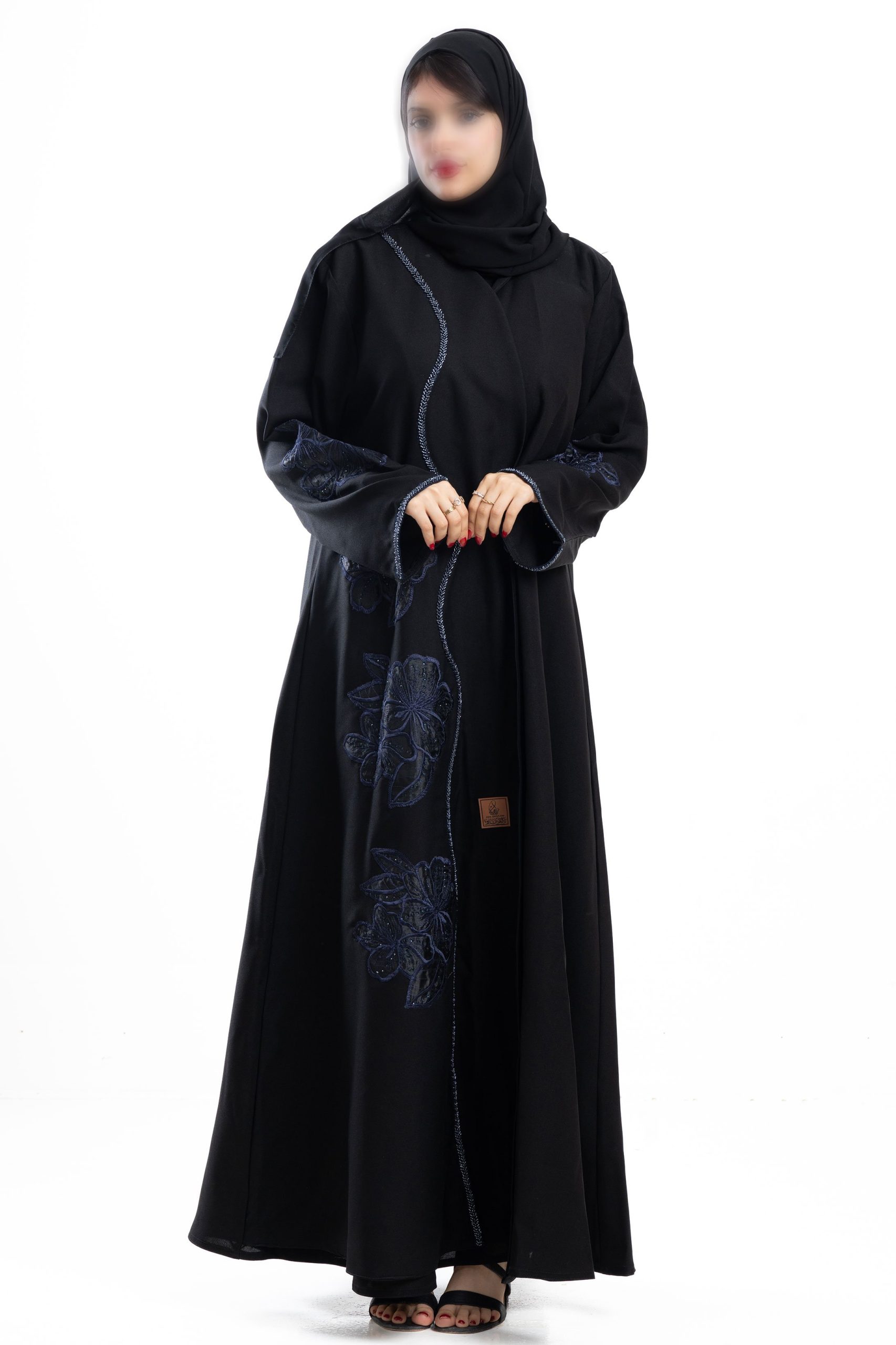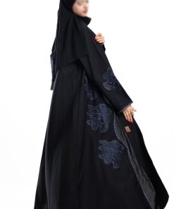 زاهية – عباية بياقة واسعة مع تطريز كحلي ع الاكمام