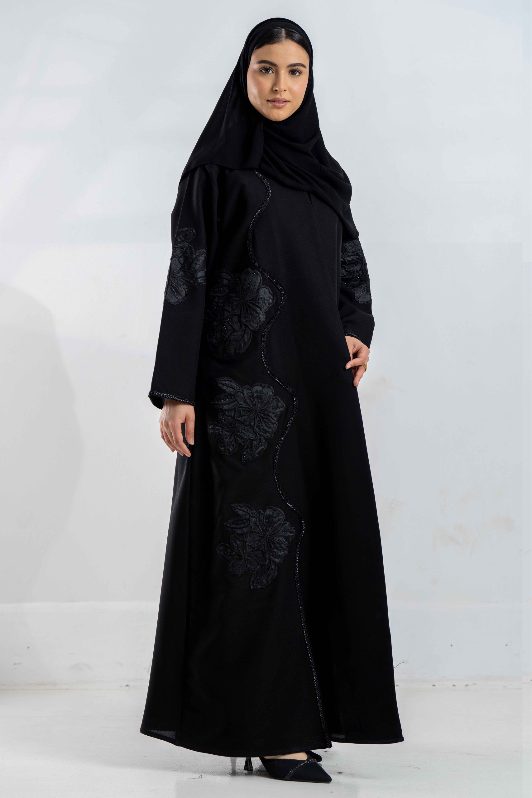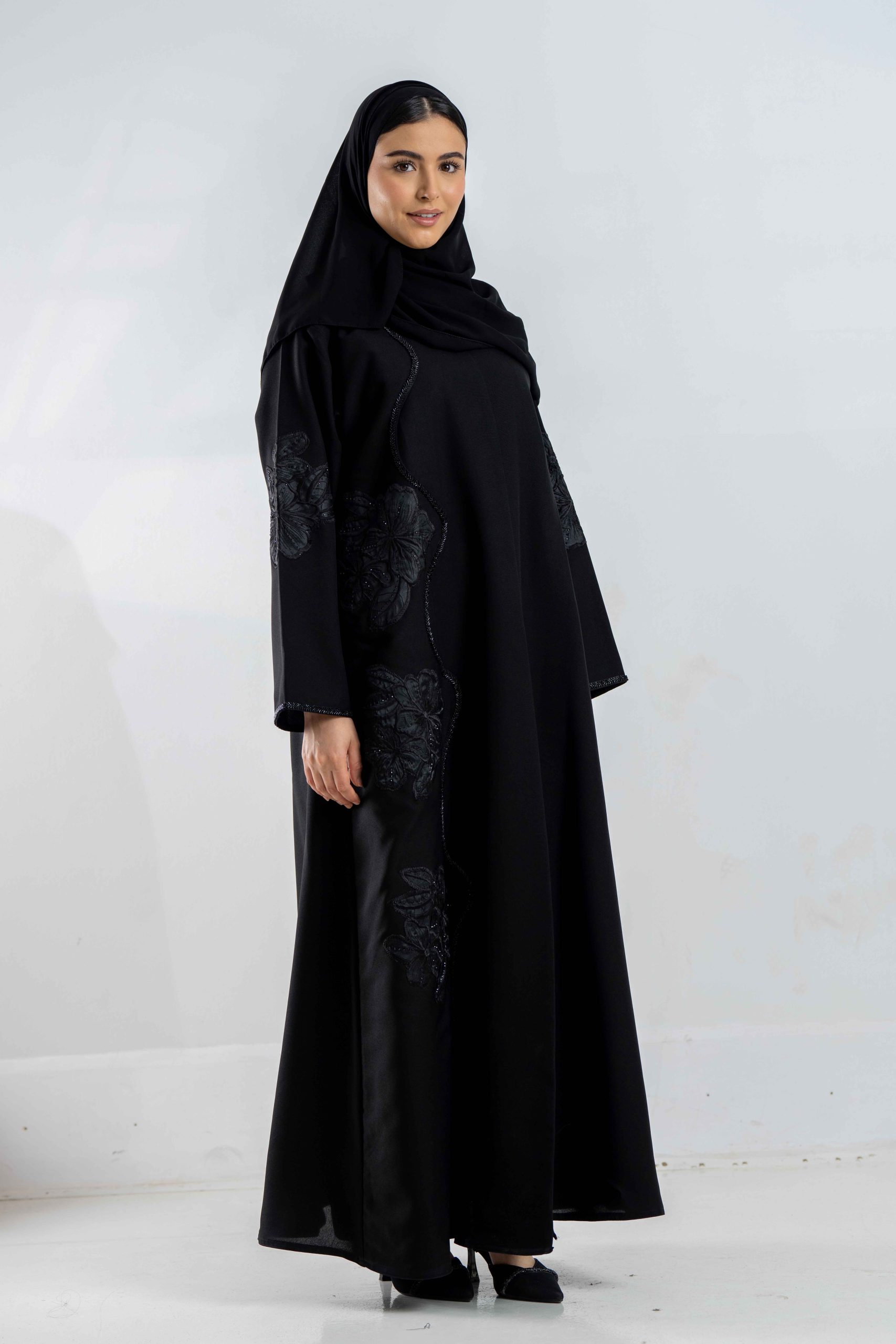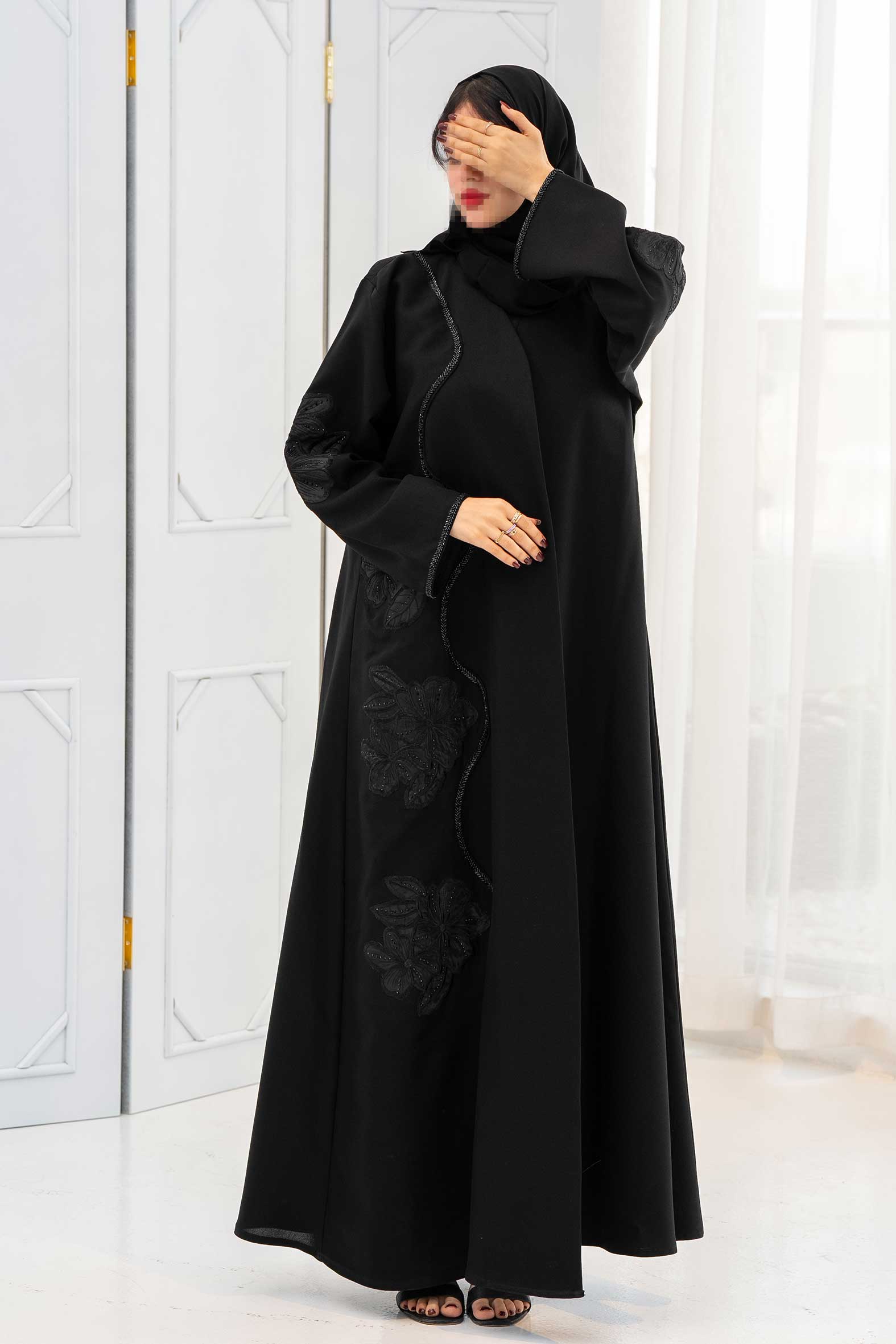 زاهية – عباية توجان كلوش بتدخيلات تطريز من الأمام والأكمام