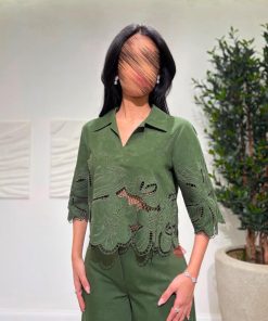 طقم بليزر و تنورة بخامة التل الناعمة بكسرات