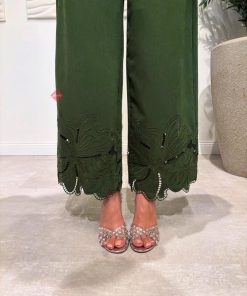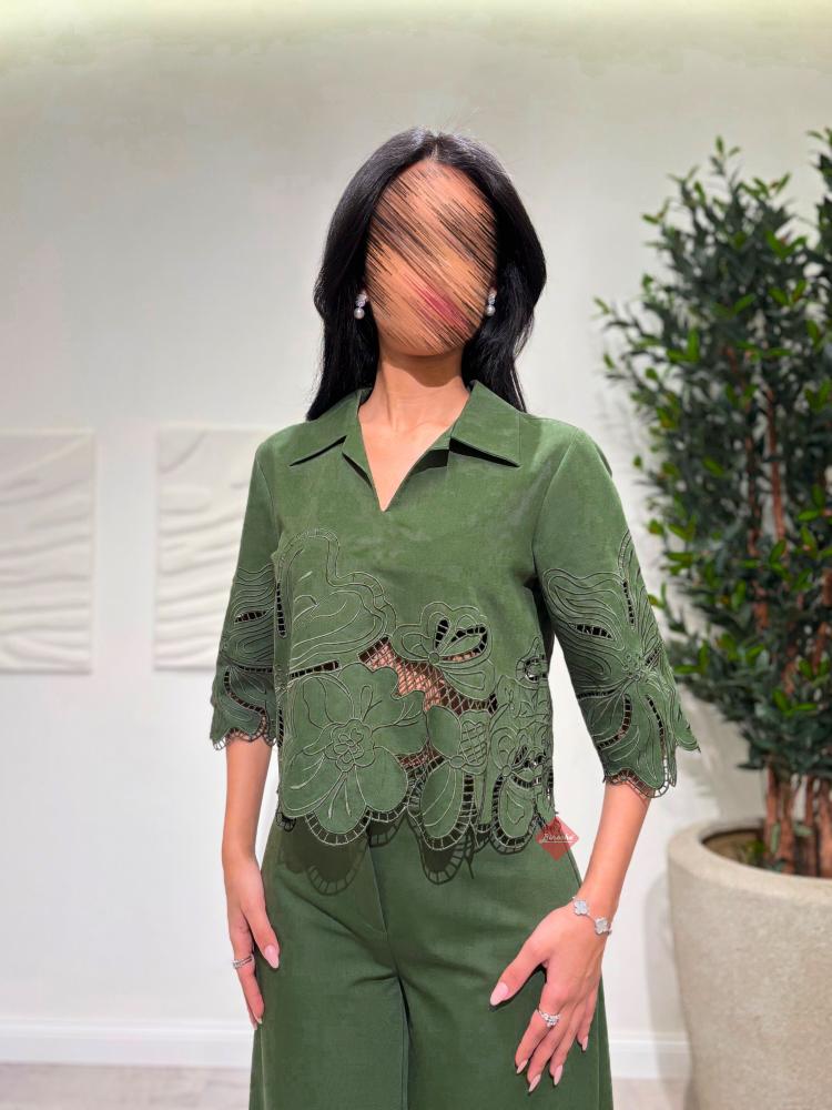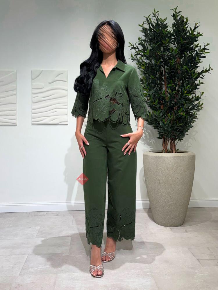 طقم بنطلون و بلوزة برسومات براندي مزين بالريش