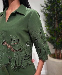تنورة بليسيه مع بلوزة راقية مزينة بالكريستال وحبل خصر أنثوي