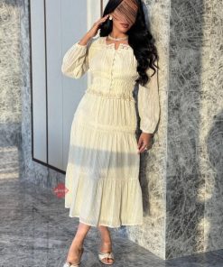 طقم بلوزة و تنورة بناتي بقماش الستان مزين بكلفه