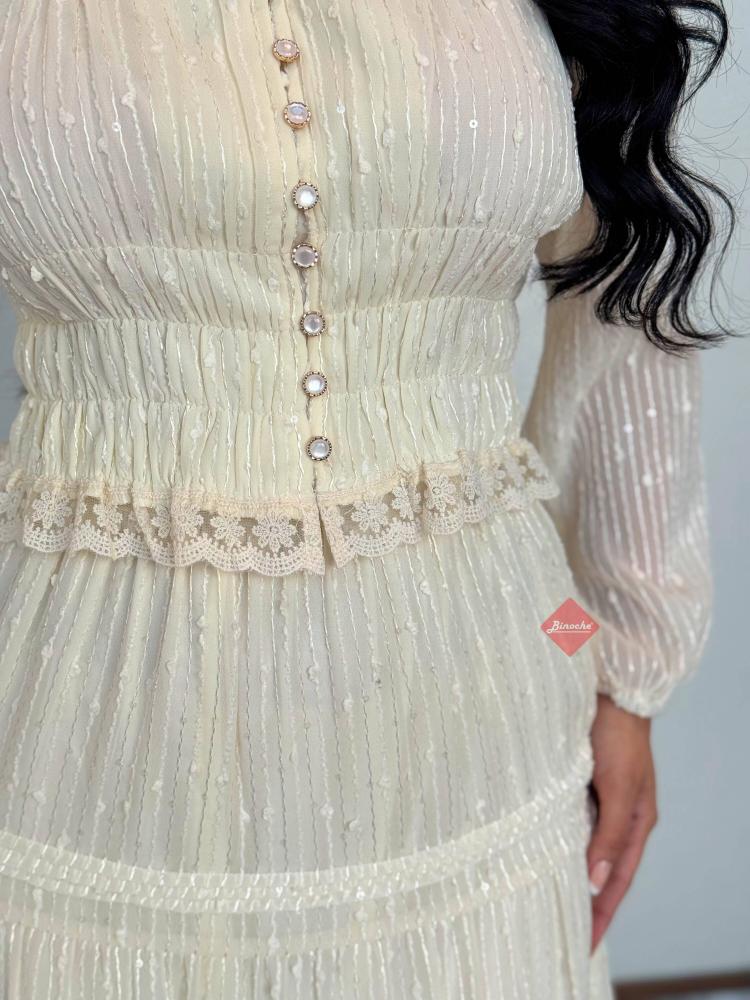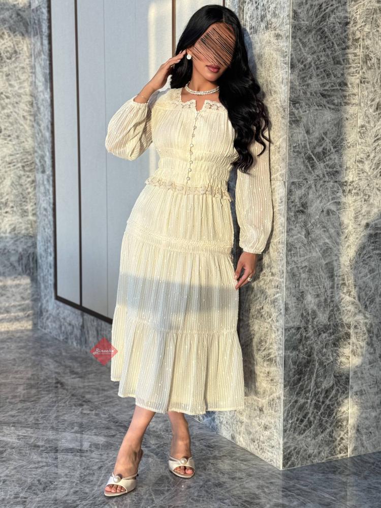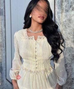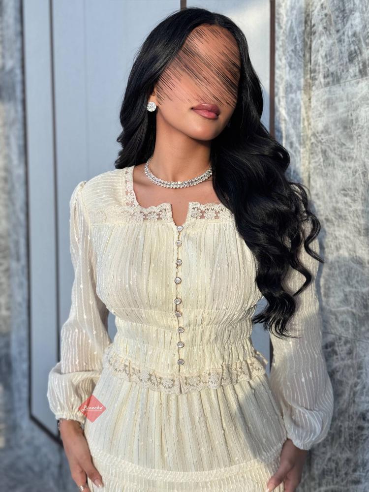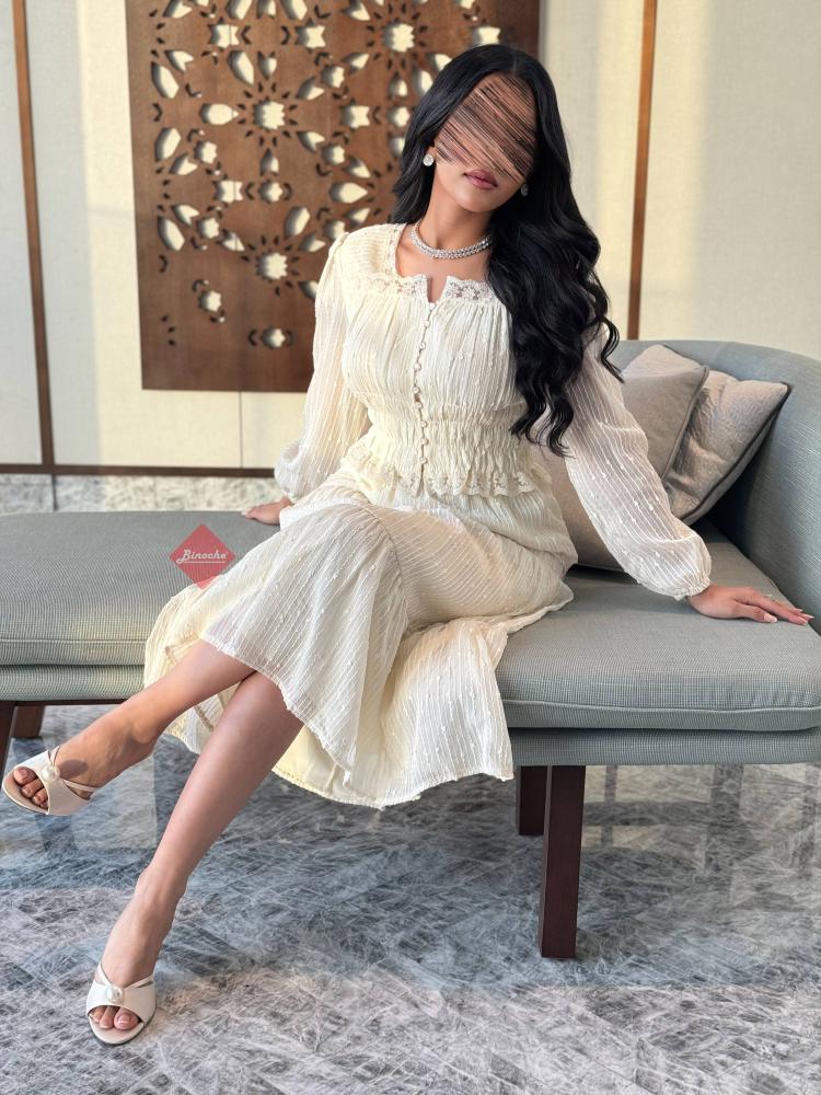 طقم بلوزة وتنورة بدانتيل راقٍ بتصميم أنثوي أنيق