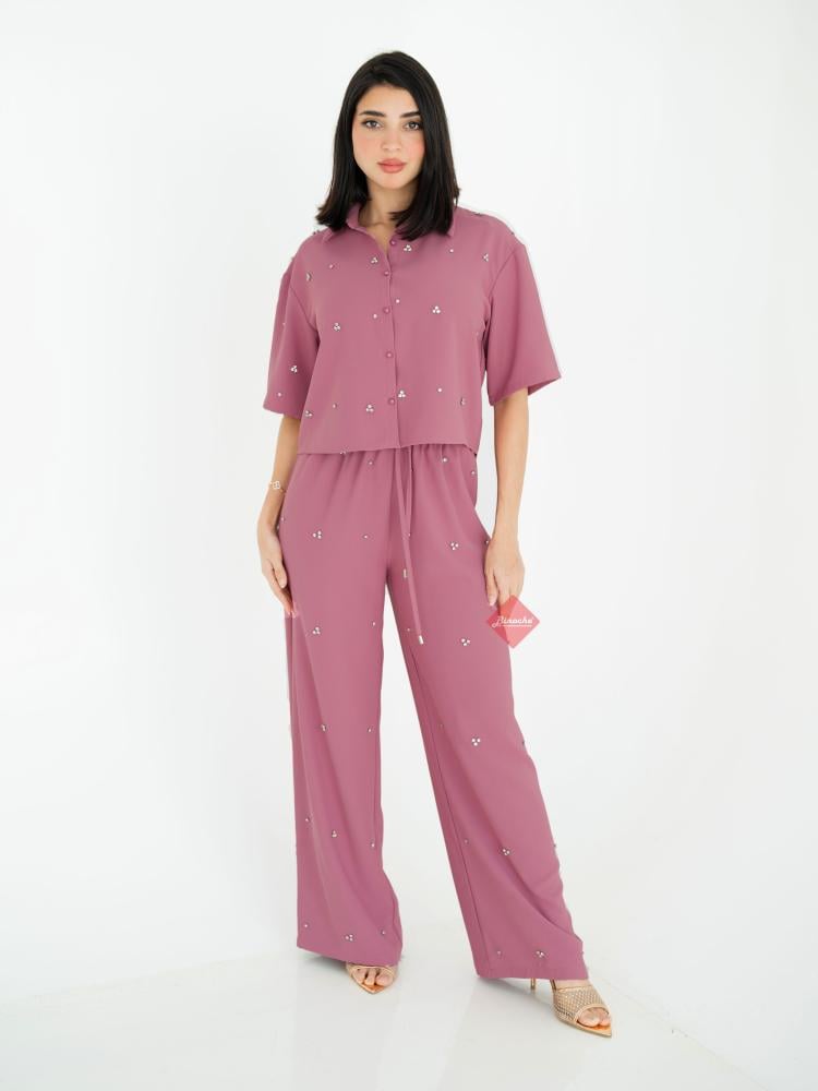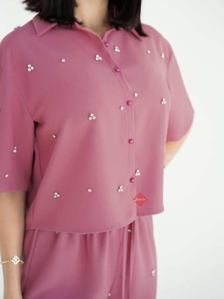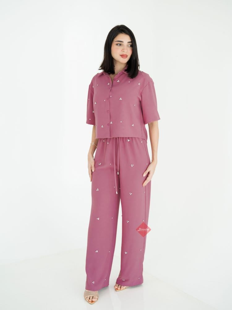تنورة بليسيه مع بلوزة راقية مزينة بالكريستال وحبل خصر أنثوي