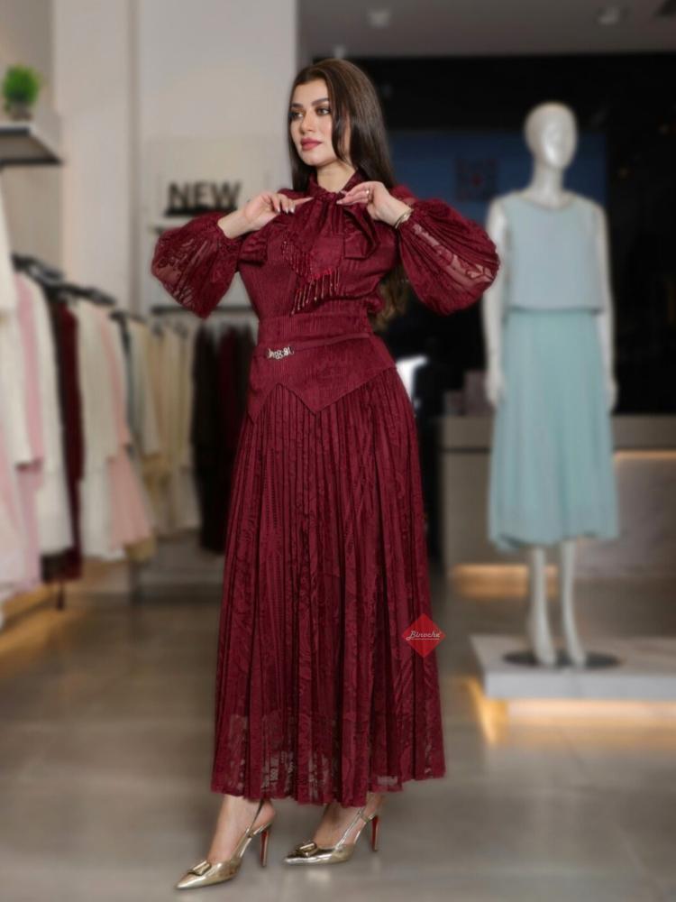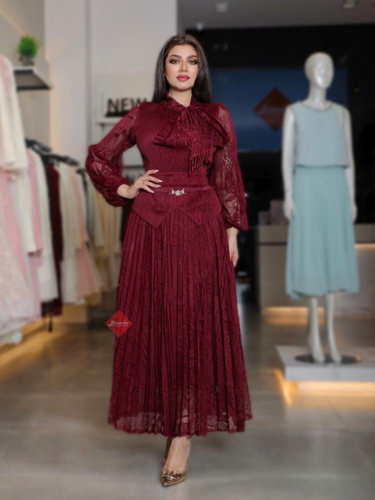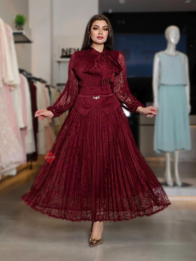 طقم بليزر و تنورة بخامة التل الناعمة بكسرات