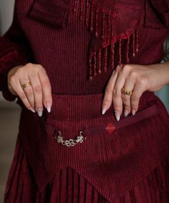 طقم بلوزة و بنطلون بخامة الستان الناعمة و مزين بالكريستال الراقي