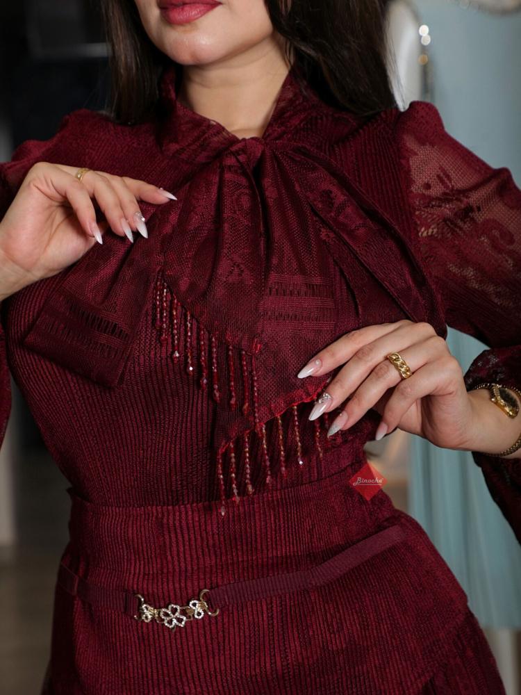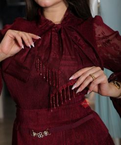 طقم بلوزة و بنطلون بخامة الكريب و مزين بالكريستال الراقي