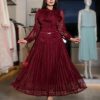 طقم بلوزة و تنورة بناتي بقماش الدانتيل المطرز بالترتر
