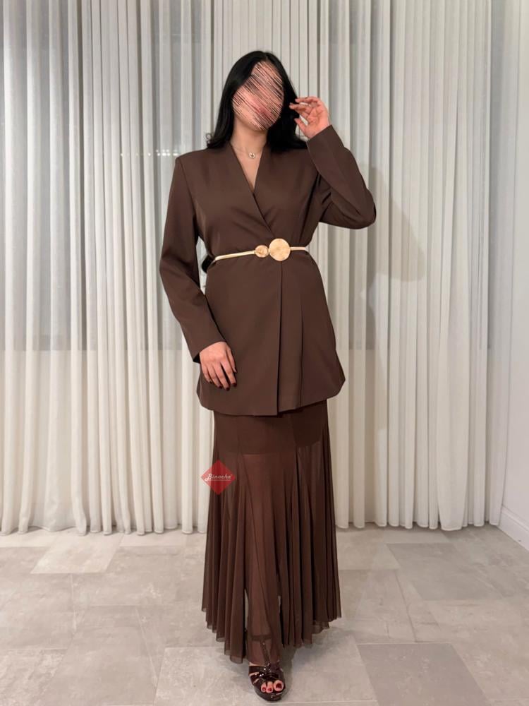 طقم راقي بلوزة كورسيه و تنورة بتصميم حورية البحر مزينه بالترتر اللامع