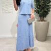 طقم تنورة وبلوزة راقي بدانتيل وبليسيه أنيق