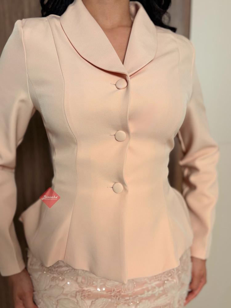 طقم بليزر و تنورة بخامة التل الناعمة بكسرات