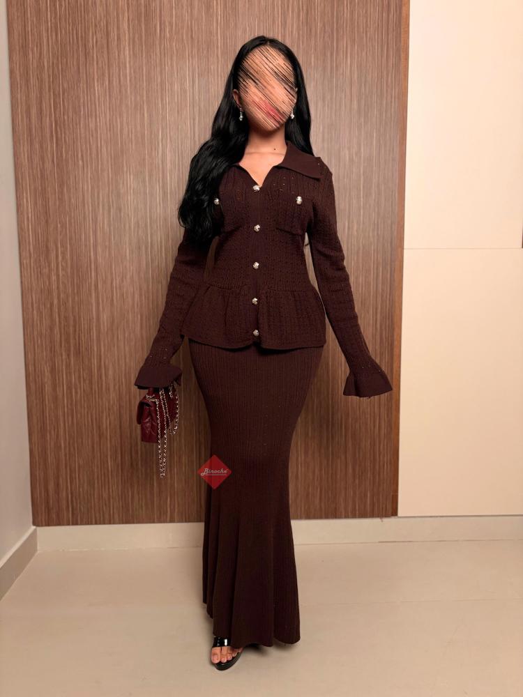 طقم بلوزة و تنورة بخامة الدانتيل الراقية