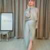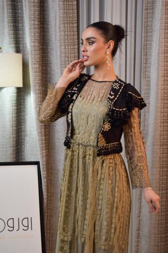 طقم طويل بلون ذهبي وأسود بلمسة راقية