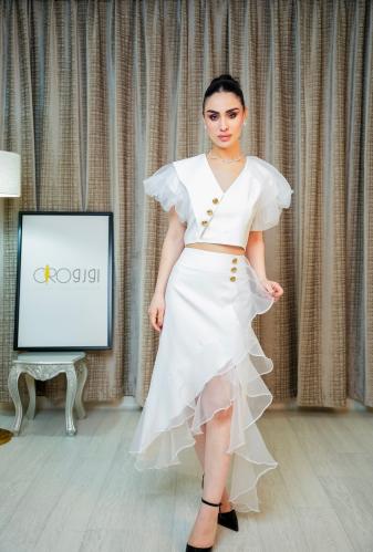 طقم نسائي أوف وايت بنقشة ملونة بلمسة ناعمة