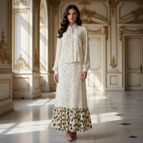 طقم نسائي أوف وايت بنقشة ملونة بلمسة ناعمة