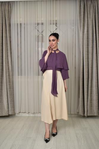 طقم نسائي موف وكريمي بلمسة أنثوية راقية