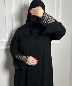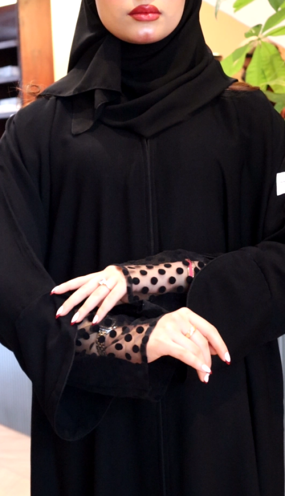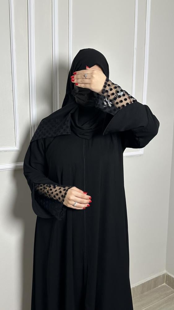 عبايات بيست – عباية عملية بتطريز على الكم باللون الاسود