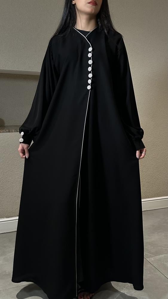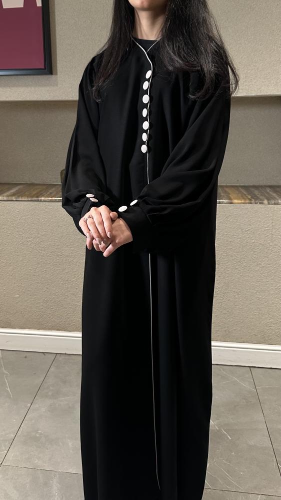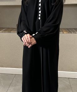 عبايات بيست – عباية عملية بتطريز على الكم باللون الاسود