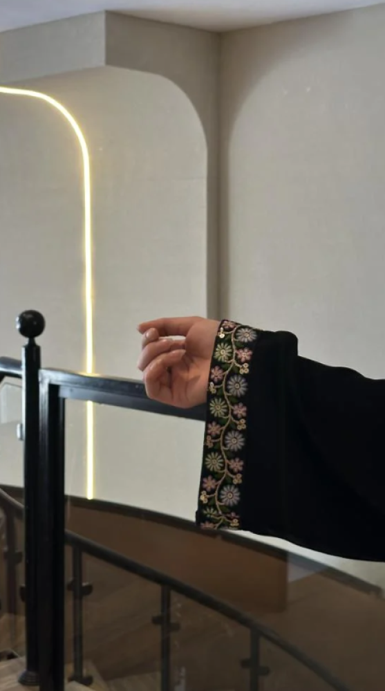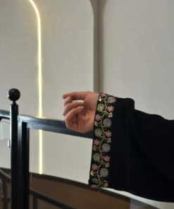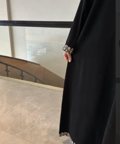 عبايات بيست – عباية عملية بتطريز على الكم باللون الاسود