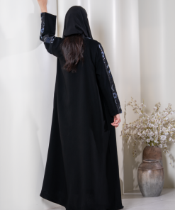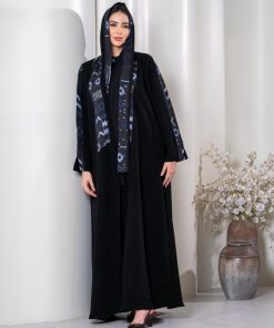 عبايات بيست – عباية فاخرة تجمع بين الأصالة واللمسة العصرية، بتصميم أسود أنيق يزينه تطريز هندسي بألوان ساحرة تمنحها طابعًا راقيًا ومميزًا.