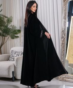 عبايات بيست – عباية فخمة من المخمل الأسود تضيف لإطلالتك لمسة دفء وأناقة لا تُقاوم.