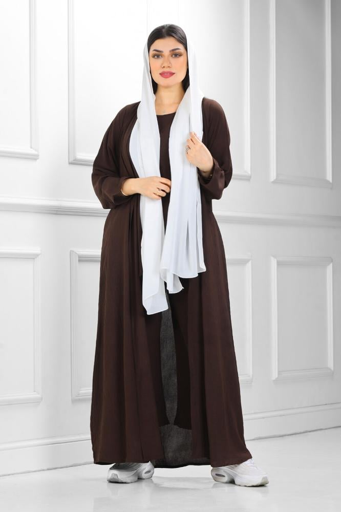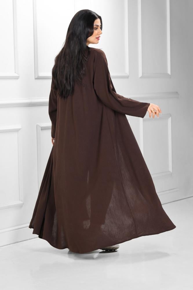 عبايات روزا – عباية “سُكون” (Sukun) الفيراني (3 قطع): جاذبية اللون الداكن وفخامة الكريب