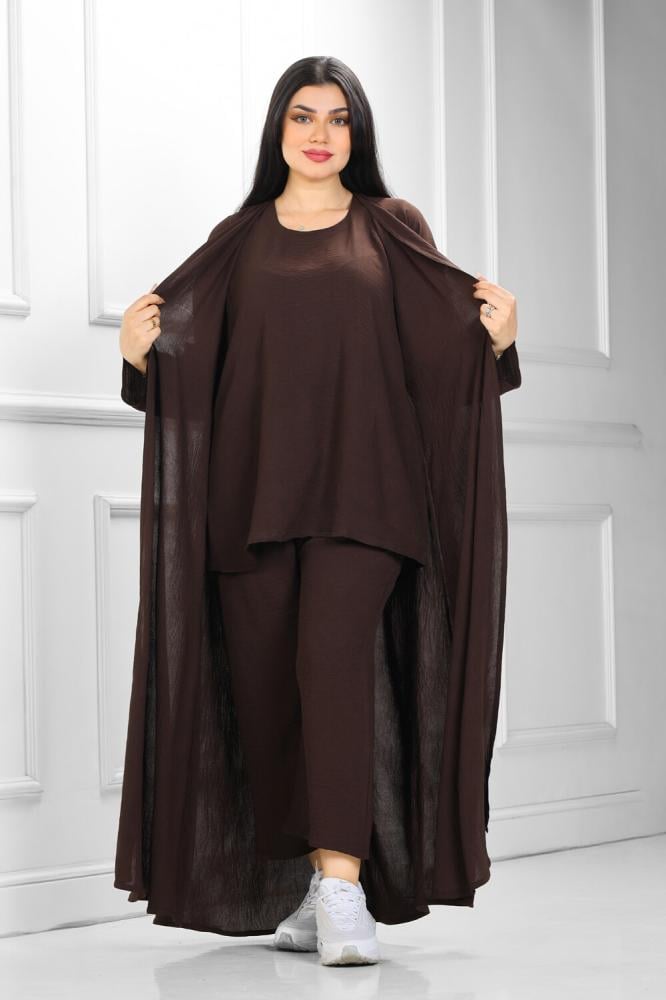 عبايات روزا – طقم عباية + صديري وبنطلون منسوج من قماش الكريب المقلم الفاخر مع الطرحة