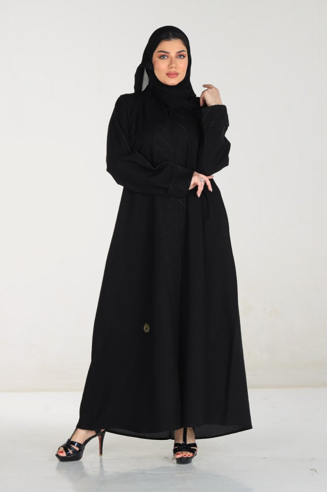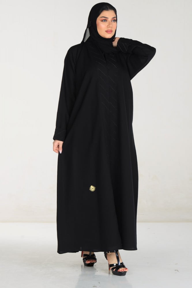 عبايات بيست – عباية عملية بتطريز على الكم باللون الاسود
